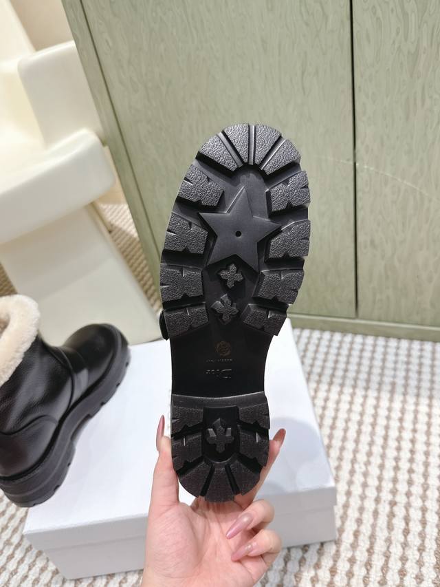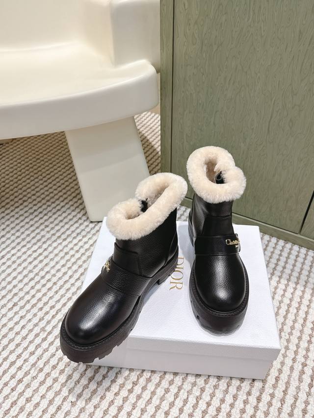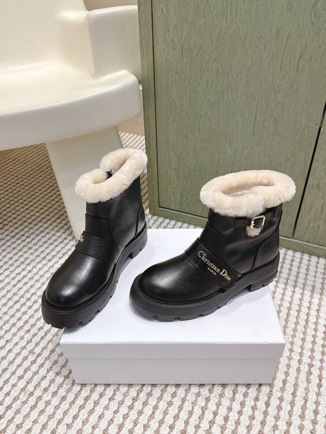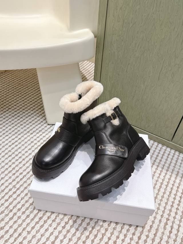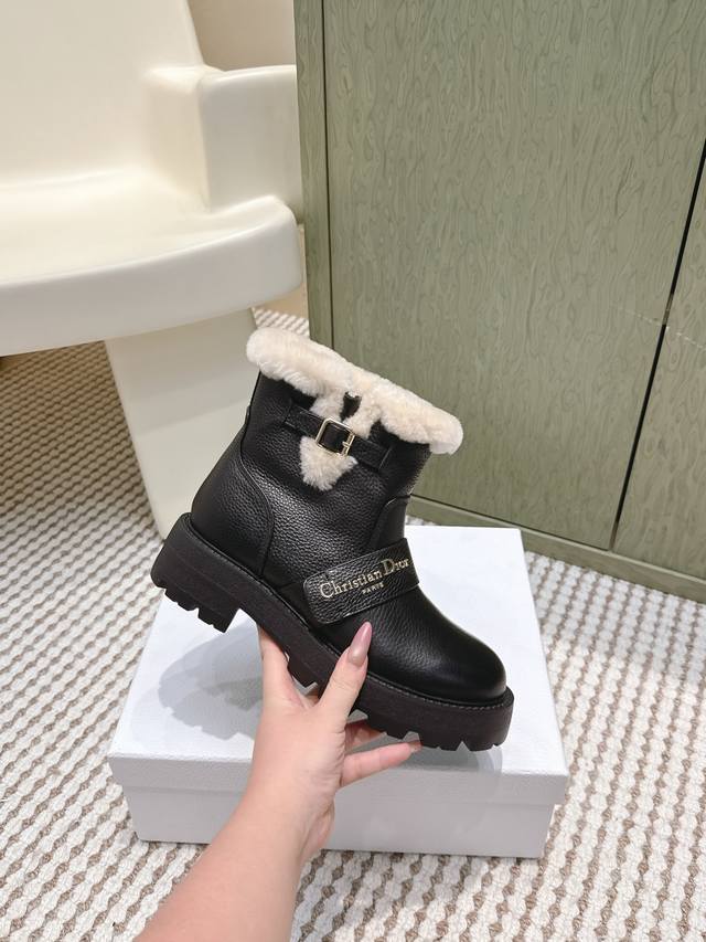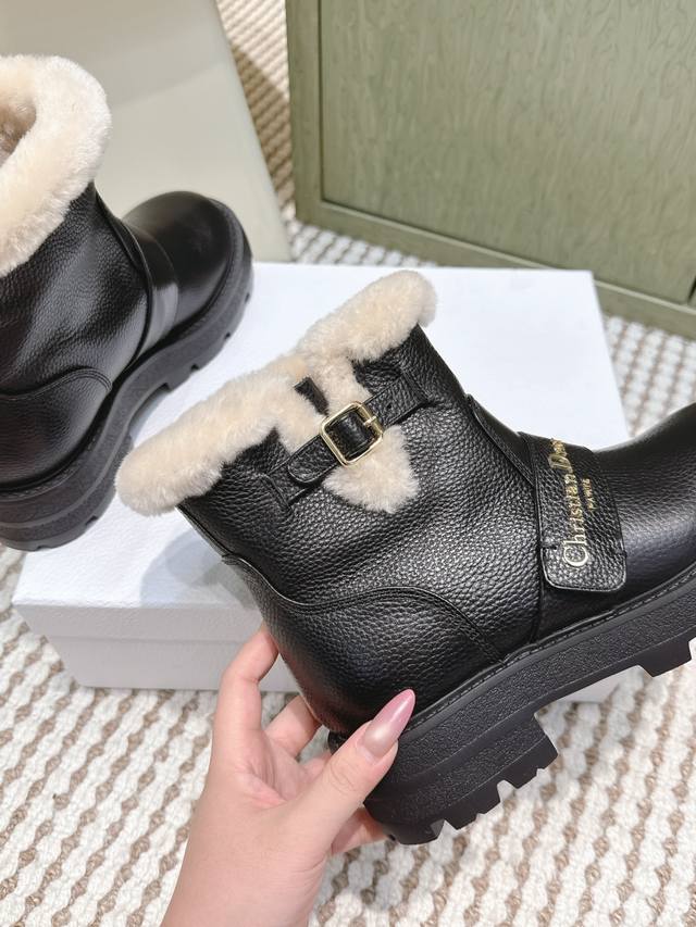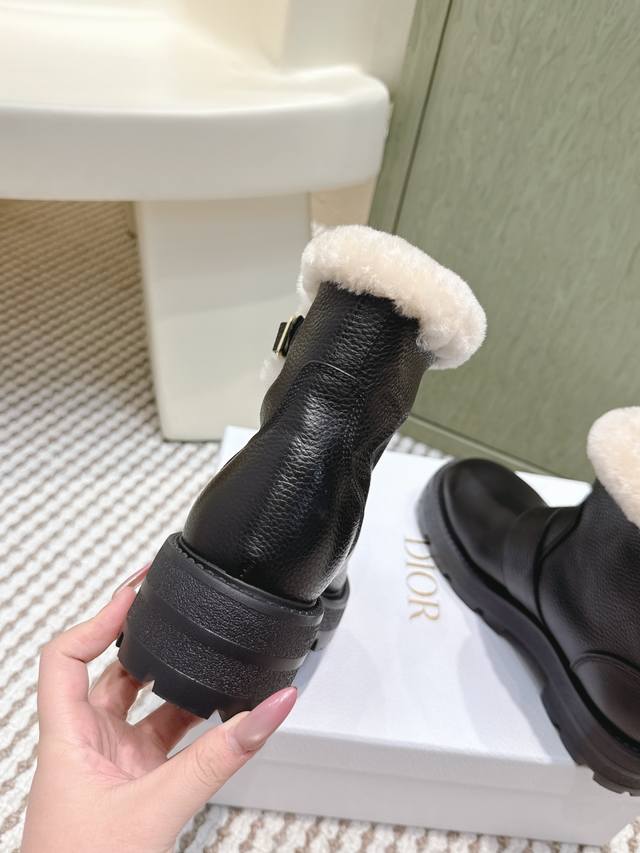 代购级 Dior-Mor系列朋克风防寒保暖毛毛女靴 2025秋冬新款明星同款字母Logo五金皮带扣侧拉链机车靴 厚底圆头一脚蹬骑士短靴 材质:鞋面进口全粒面小牛皮+100%羊羔毛内里+原版开模I底 底厚:3.5Cm Size :35-41标准码 40.41定制不退换