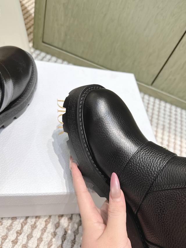 / 代购级 Dior-Mor系列朋克风防寒保暖毛毛女靴 2025秋冬新款明星同款字母Logo五金皮带扣侧拉链机车靴 厚底圆头一脚蹬骑士短靴 材质:鞋面进口全粒面小牛