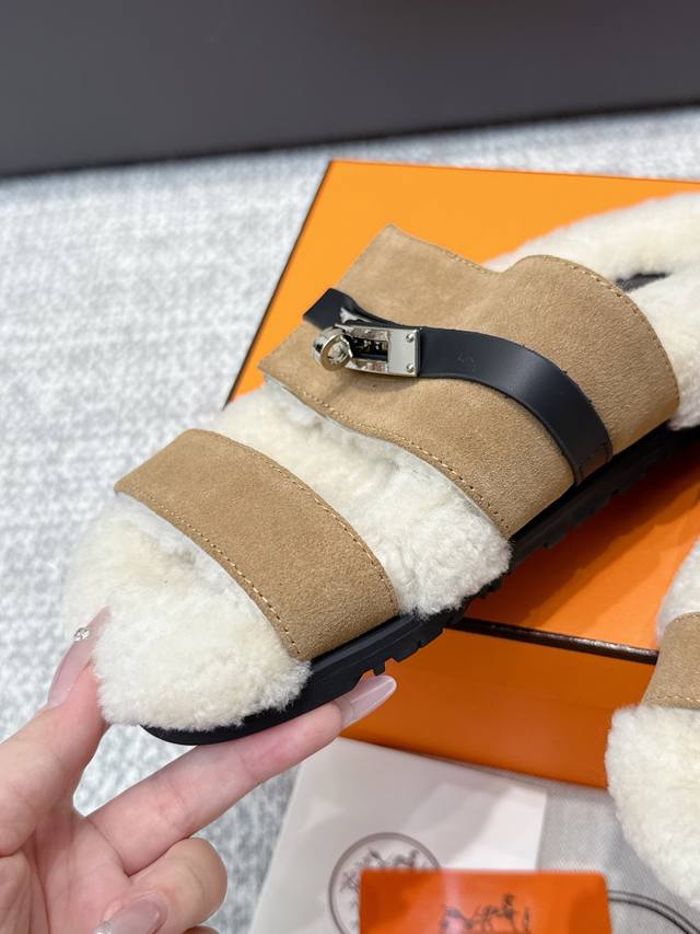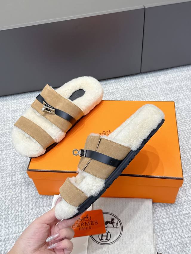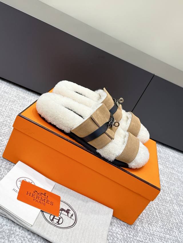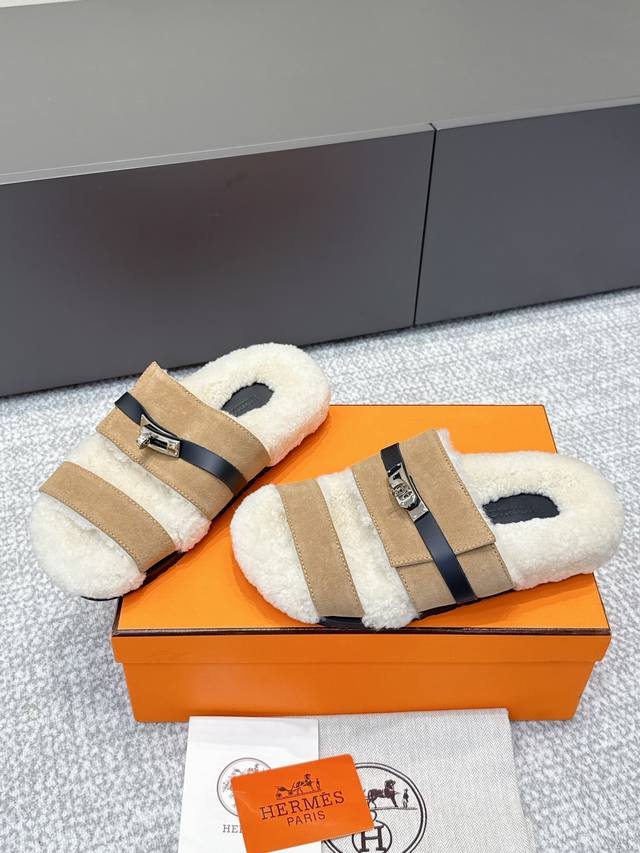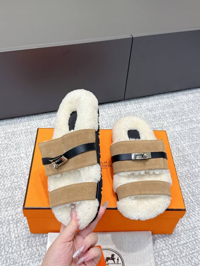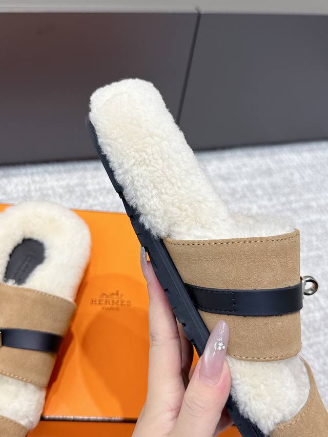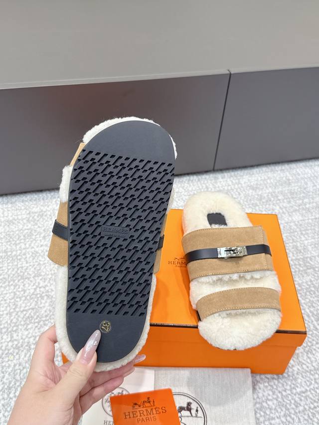 / 代购级 Hermes爱马仕25Ss最新秋冬Kelly毛拖 超级百搭好看时髦 超多明星网红种草 秋冬必备 随意舒适高级感 鞋面:进口羊京 内里:进口羊毛里 垫脚: