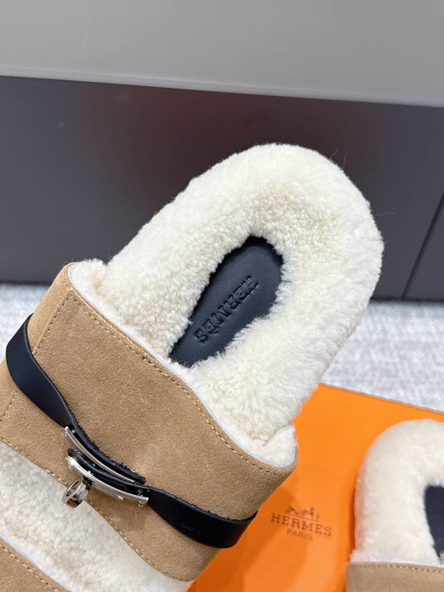 代购级 Hermes爱马仕25Ss最新秋冬Kelly毛拖 超级百搭好看时髦 超多明星网红种草 秋冬必备 随意舒适高级感 鞋面:进口羊京 内里:进口羊毛里 垫脚:迸口混种羊皮 大底:Tpu防滑耐磨大底 Size:35-40 40定做不退换