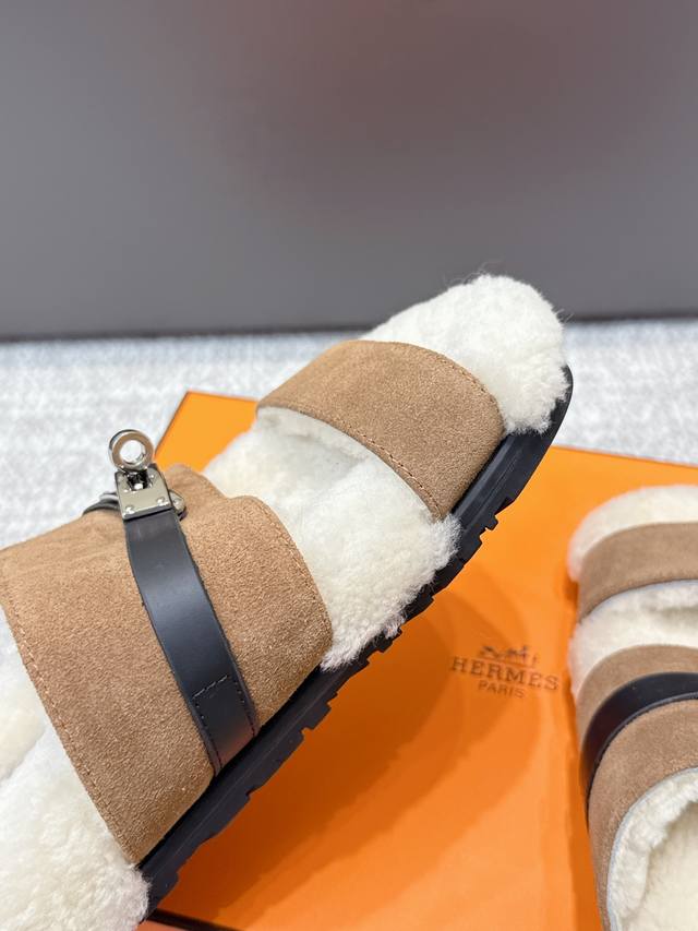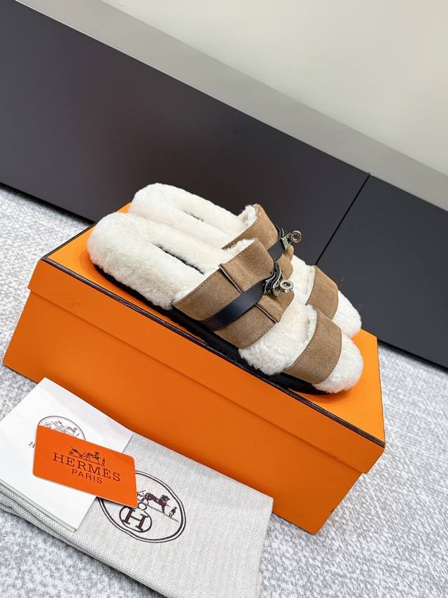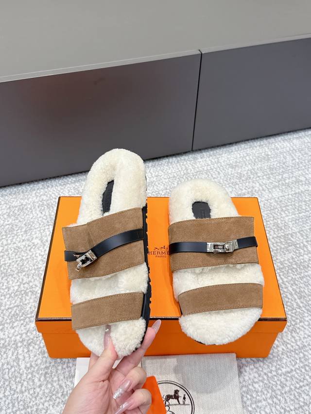 / 代购级 Hermes爱马仕25Ss最新秋冬Kelly毛拖 超级百搭好看时髦 超多明星网红种草 秋冬必备 随意舒适高级感 鞋面:进口羊京 内里:进口羊毛里 垫脚: