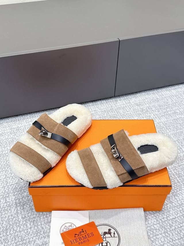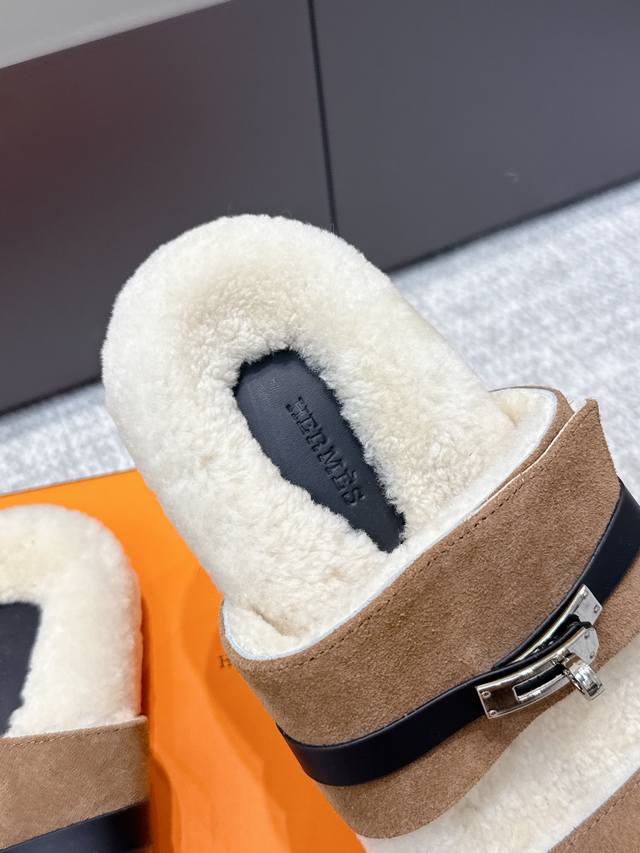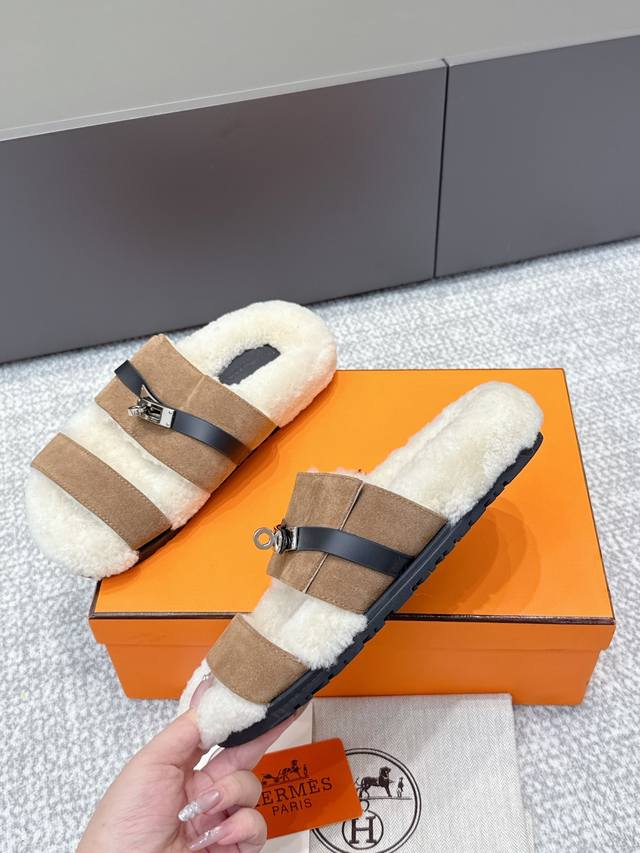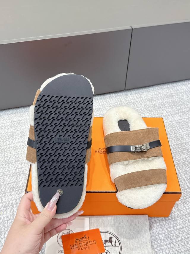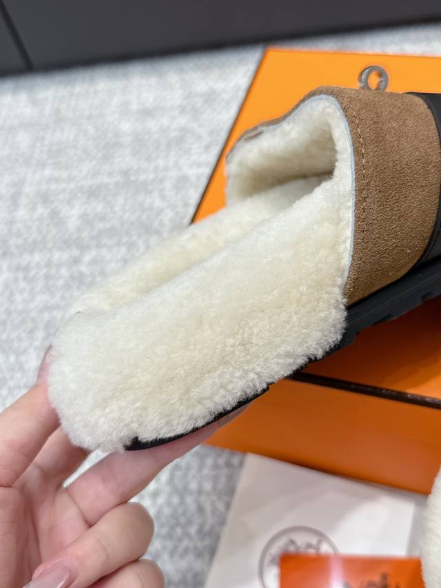 代购级 Hermes爱马仕25Ss最新秋冬Kelly毛拖 超级百搭好看时髦 超多明星网红种草 秋冬必备 随意舒适高级感 鞋面:进口羊京 内里:进口羊毛里 垫脚:迸口混种羊皮 大底:Tpu防滑耐磨大底 Size:35-40 40定做不退换