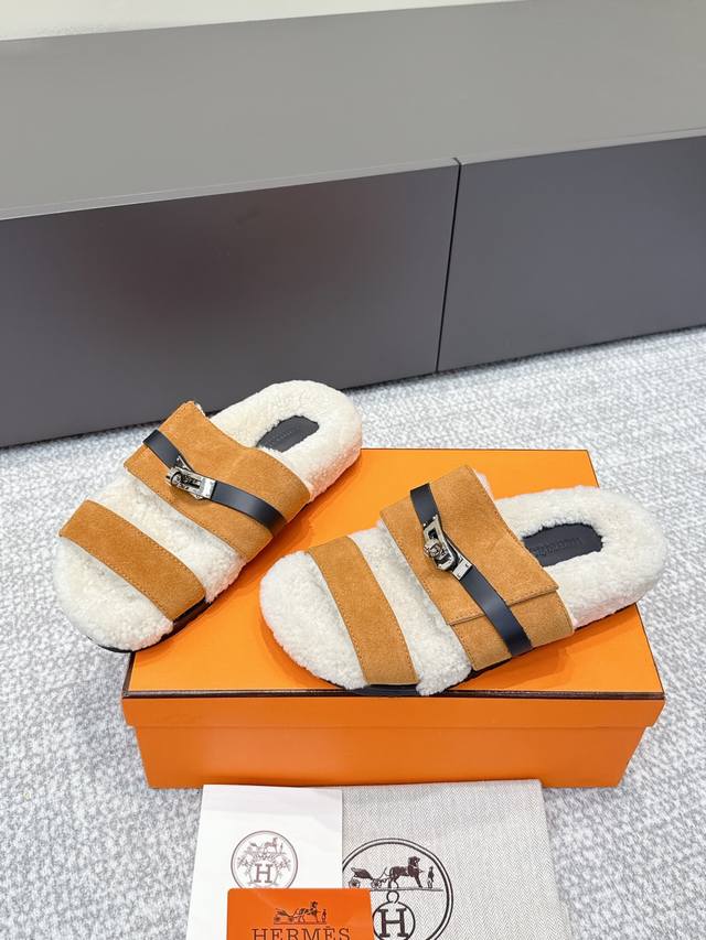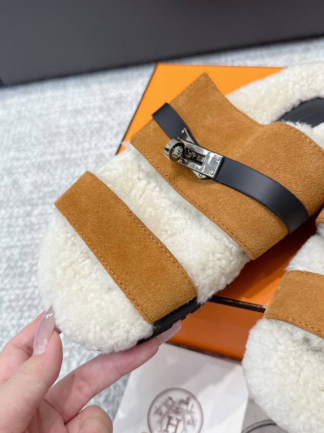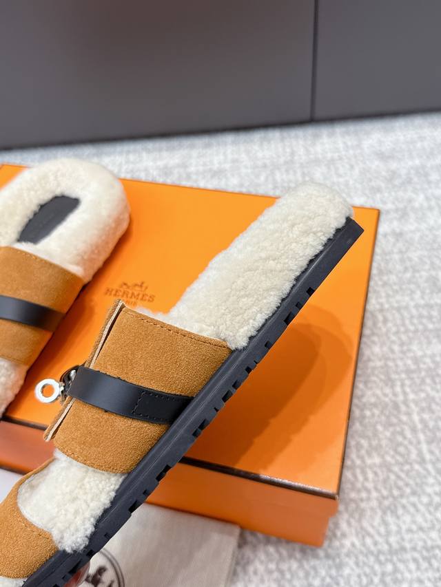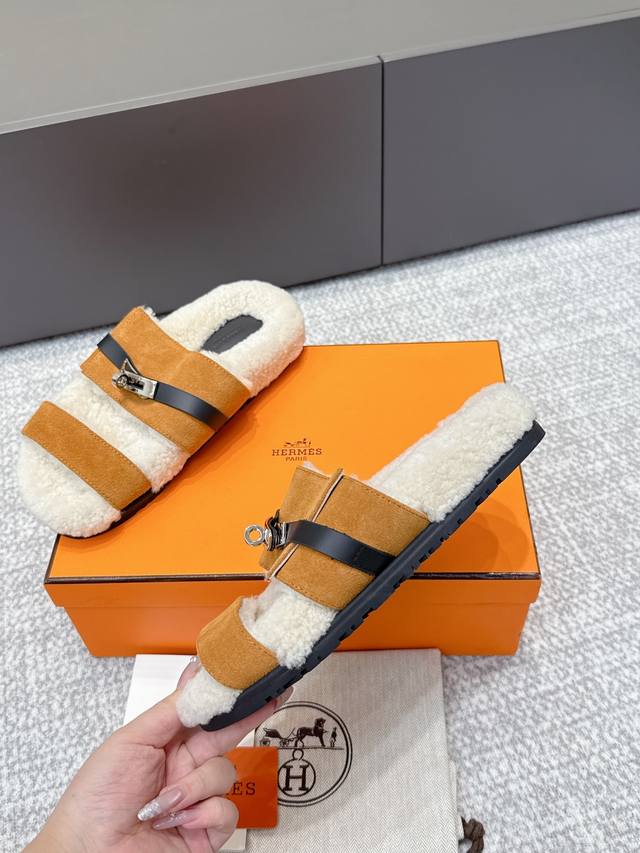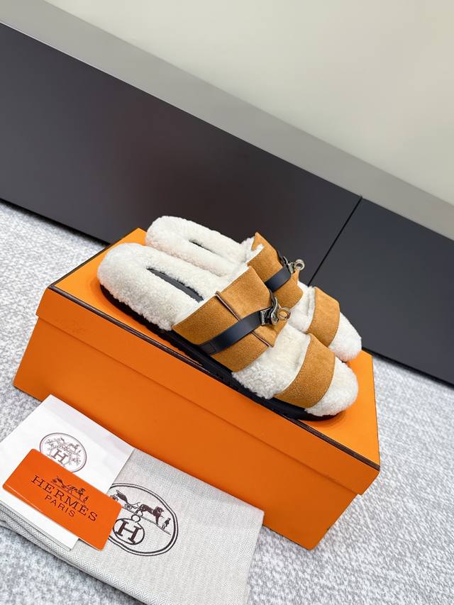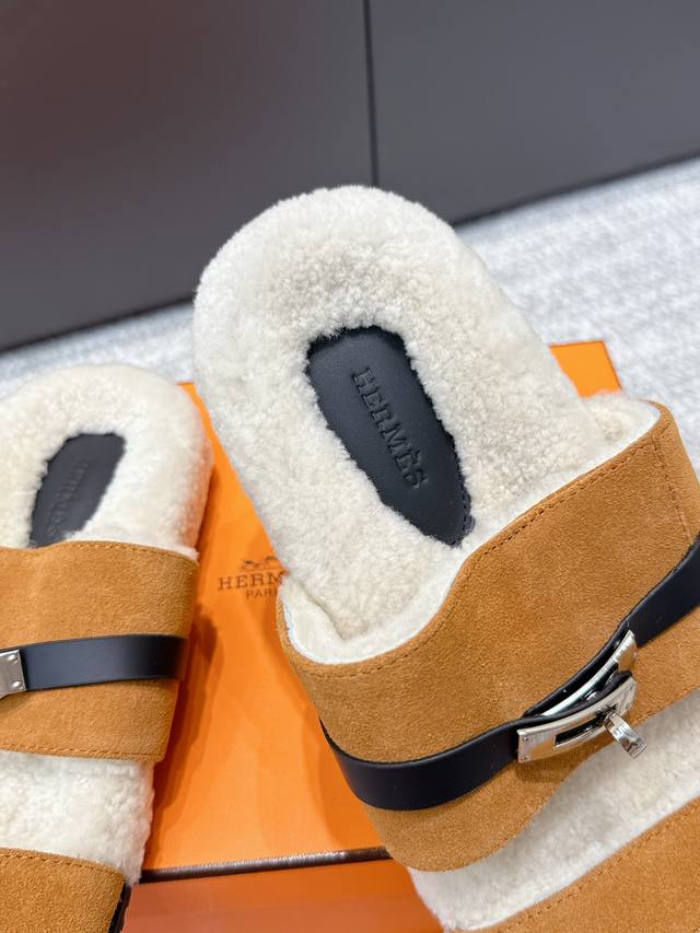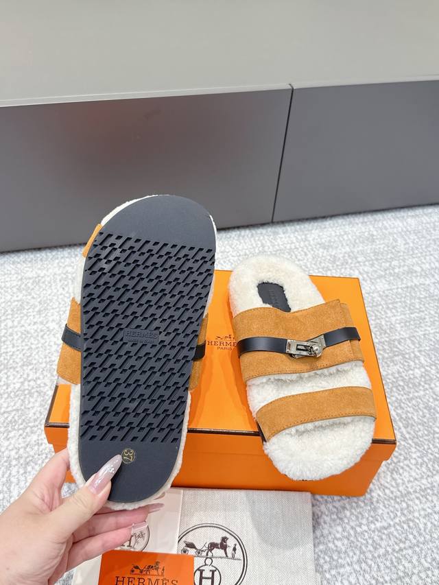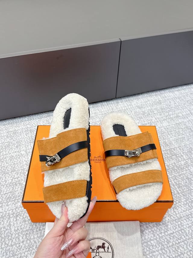 / 代购级 Hermes爱马仕25Ss最新秋冬Kelly毛拖 超级百搭好看时髦 超多明星网红种草 秋冬必备 随意舒适高级感 鞋面:进口羊京 内里:进口羊毛里 垫脚:
