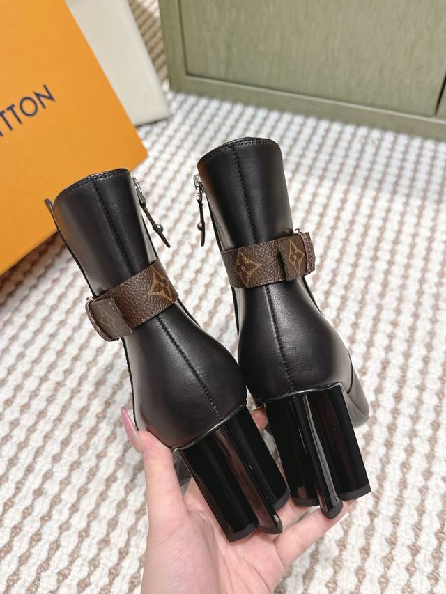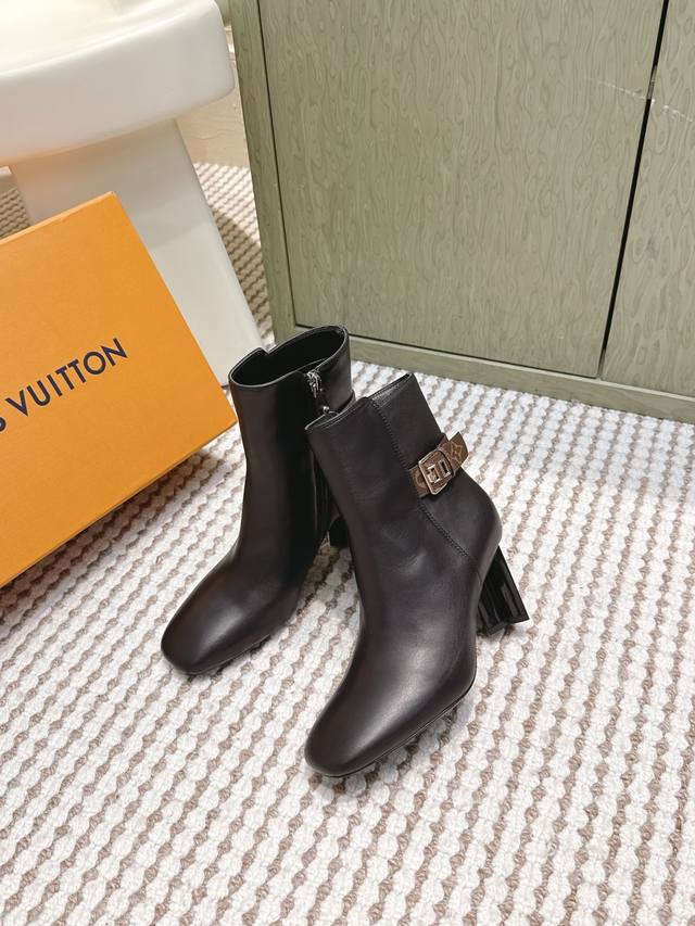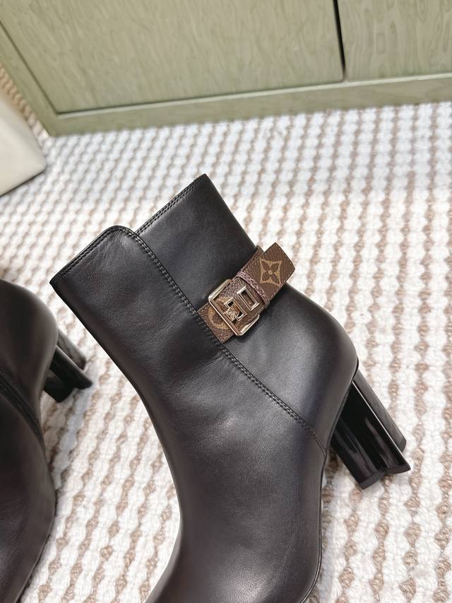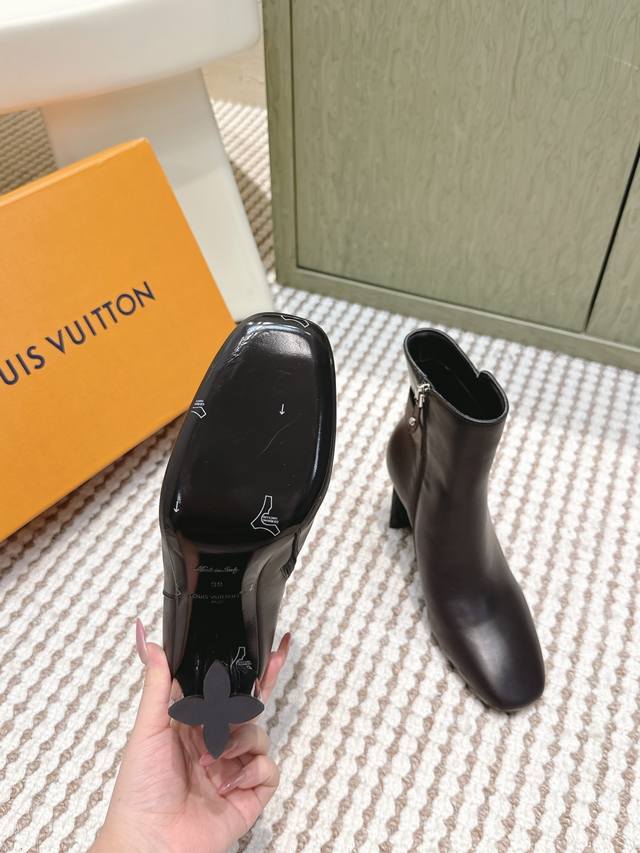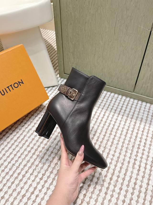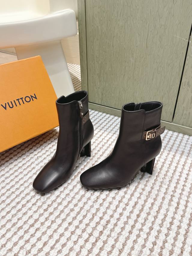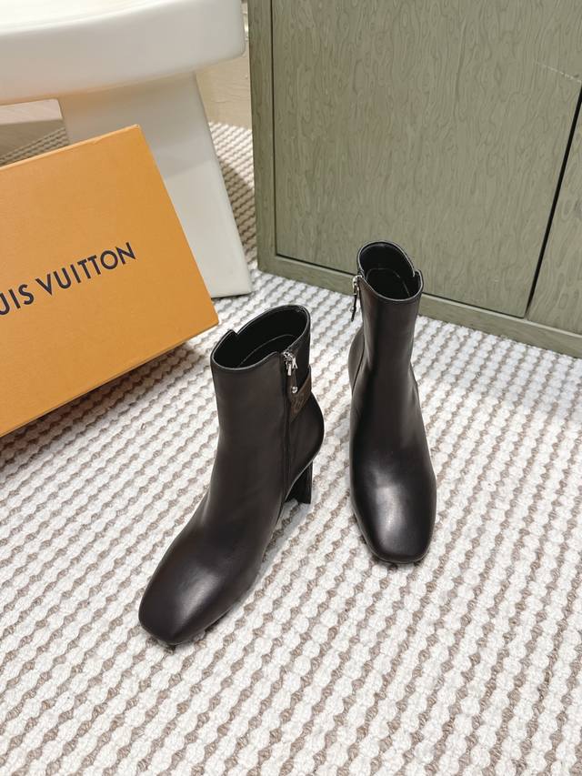 / 代购级 Louis Vuitton 25Ss 秋冬新款简约圆头小牛皮高跟短靴 原版套楦,完美的线条,简约大气上脚显气质粗跟舒适百搭 还能拉长双腿显高显瘦显腿长,