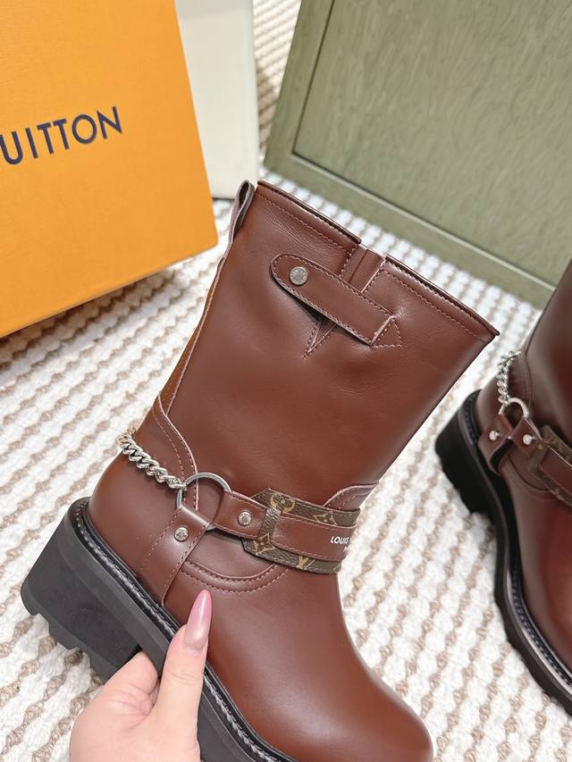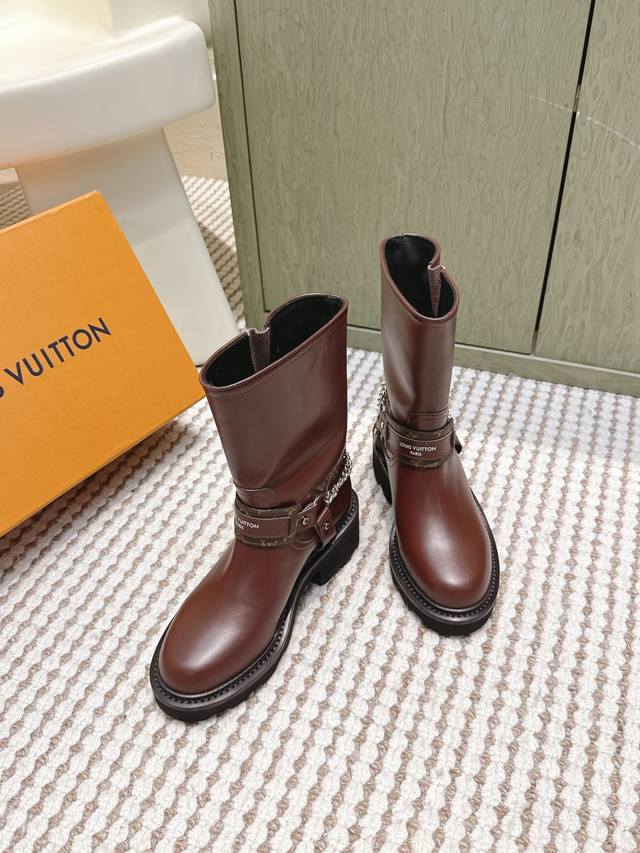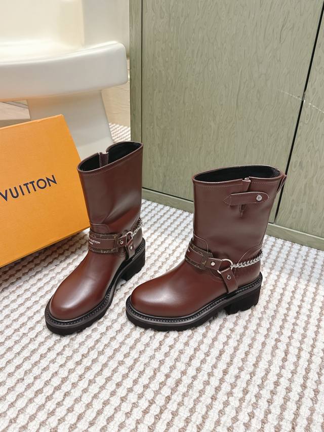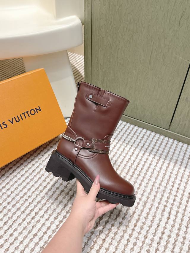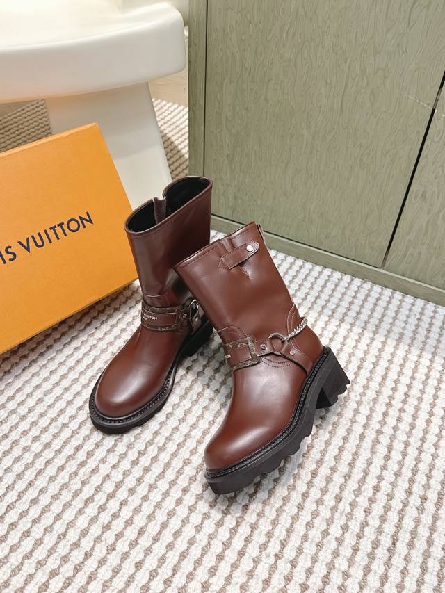 / 代购级 Louis Vuitton 25Ss Lv驴牌秋冬新款高跟短靴 楦型百搭瘦脚Yyds.造型立体饱满,气质满满 上脚舒适 非常复古风、气场十足,加原版老花