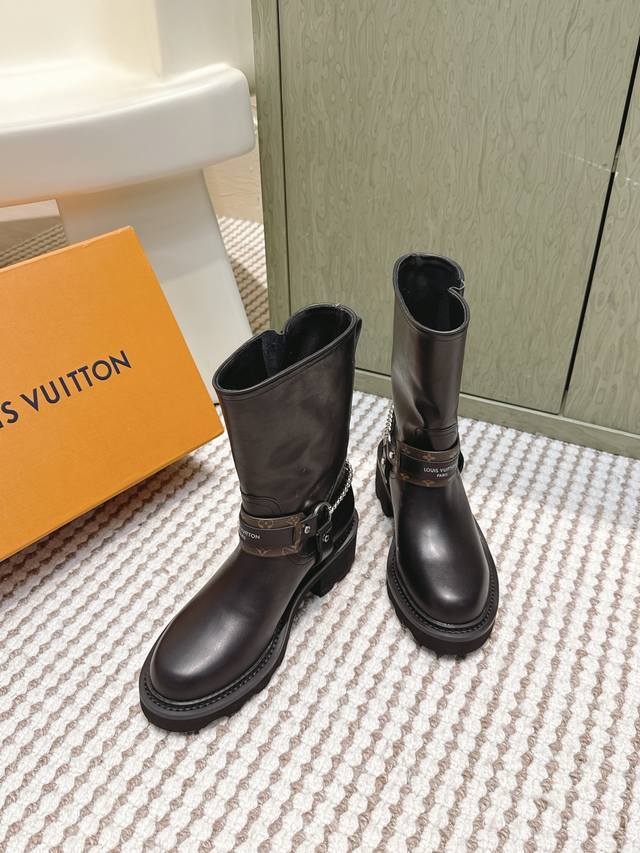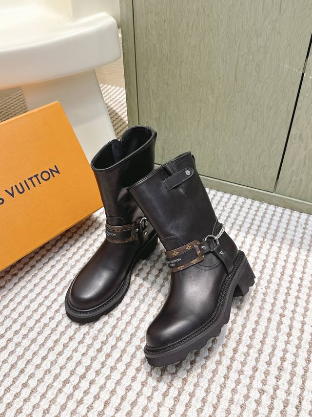 / 代购级 Louis Vuitton 25Ss Lv驴牌秋冬新款高跟短靴 楦型百搭瘦脚Yyds.造型立体饱满,气质满满 上脚舒适 非常复古风、气场十足,加原版老花