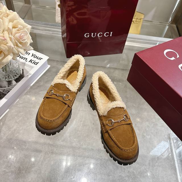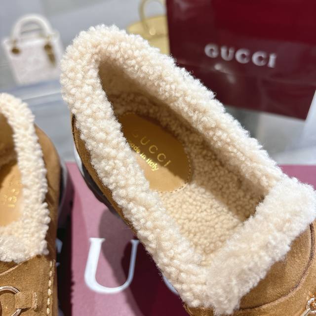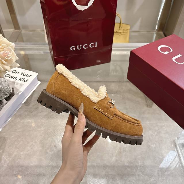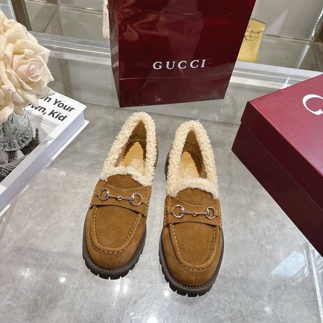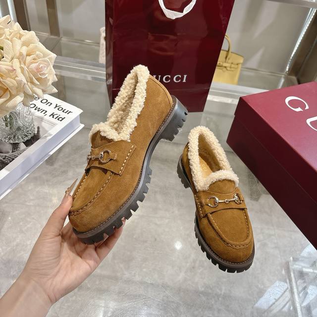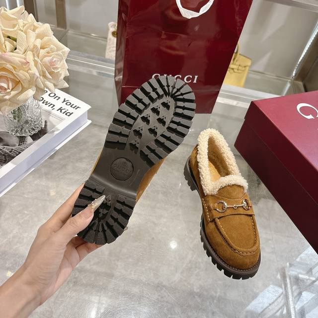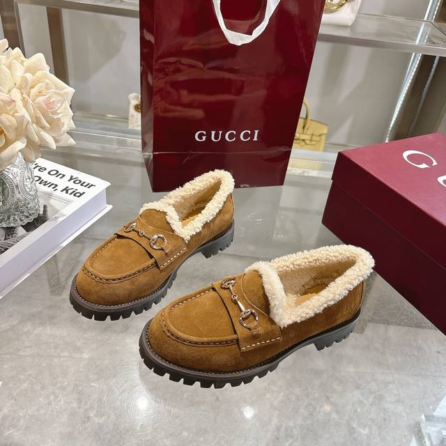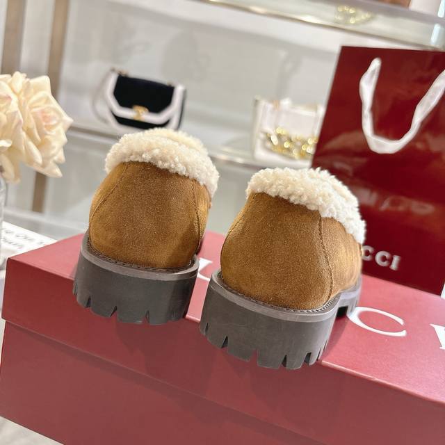 / 冬季新款羊毛内里女士马衔扣乐福鞋 精巧细节为这款乐福鞋注入优雅气息。选用光滑绒面材质,搭配美利奴羊毛衬里,更显矜贵格调。浅金色调马衔扣为这款经典而不失现代风范的