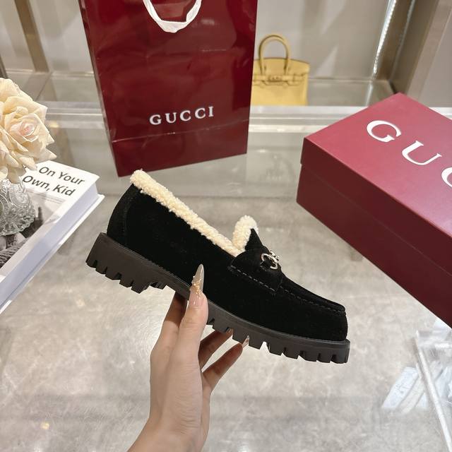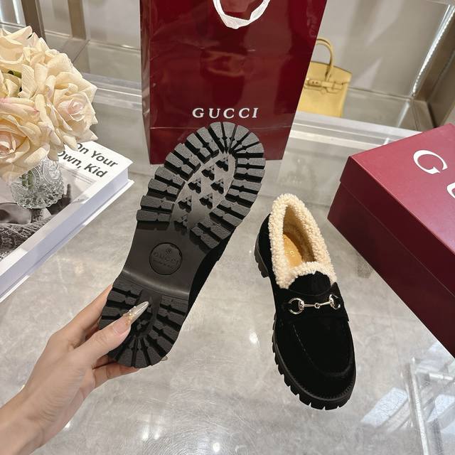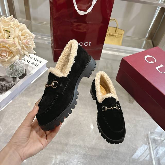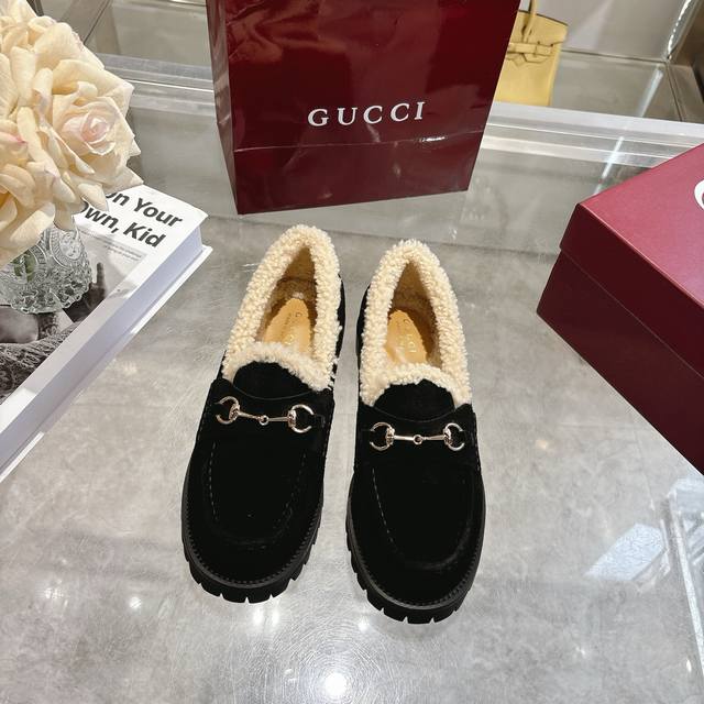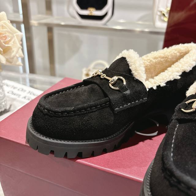 / 冬季新款羊毛内里女士马衔扣乐福鞋 精巧细节为这款乐福鞋注入优雅气息。选用光滑绒面材质,搭配美利奴羊毛衬里,更显矜贵格调。浅金色调马衔扣为这款经典而不失现代风范的
