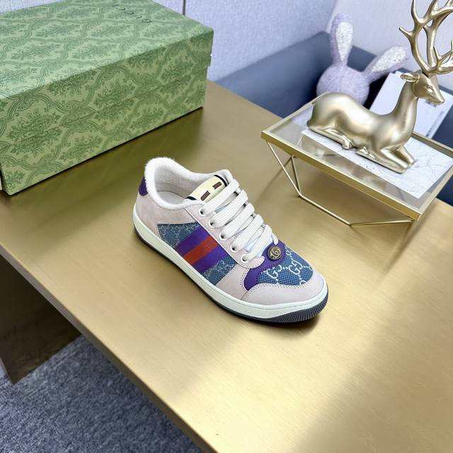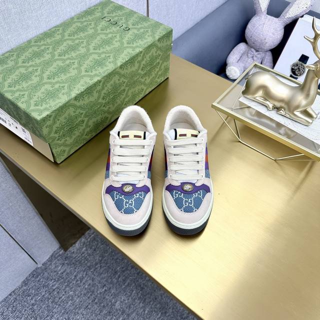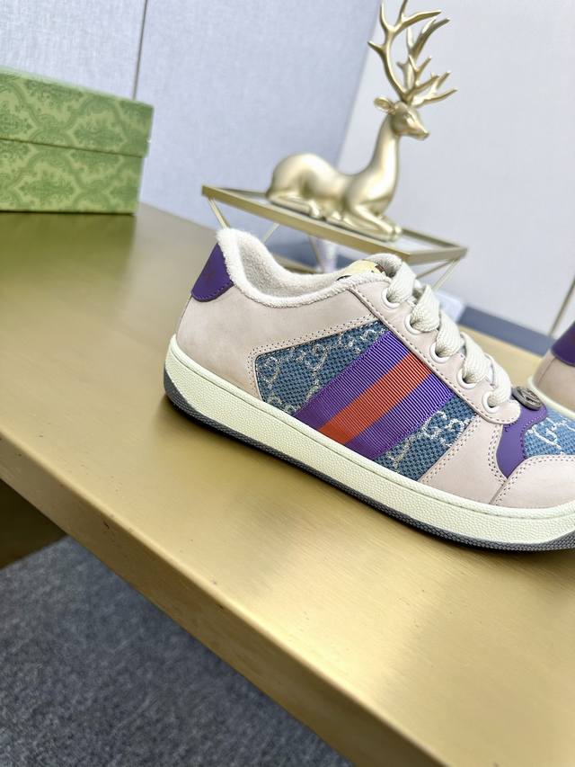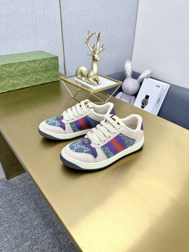 出厂价pp男女码 市场最高版本。 DDD Gucci古驰全新升级后套内里,顶级做旧小脏鞋,Screener 系列饰水晶运动鞋 DDD G小脏鞋镶钻款 蓝色水钻,经典休闲情侣款,复古板鞋做旧G家脏脏鞋,同步专柜更新! DDD ①鞋面增加原版一致的水性涂边工艺市场上的普通油边胶感太强又容易掉!A级头层磨砂皮 带毛孔 对版电脑刺绣双G布,内里高密度毛巾绒。 DDD ②中底板细节上增加了pvc透明小圆标封线,六次开模采用滴珠宝工艺定制双色双G扣,力求做到和原版一样,一对扣子比市面普通扣贵3倍以上。 DDD ③做旧