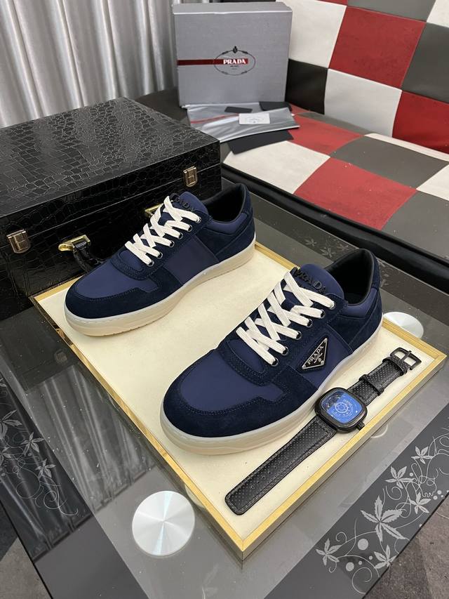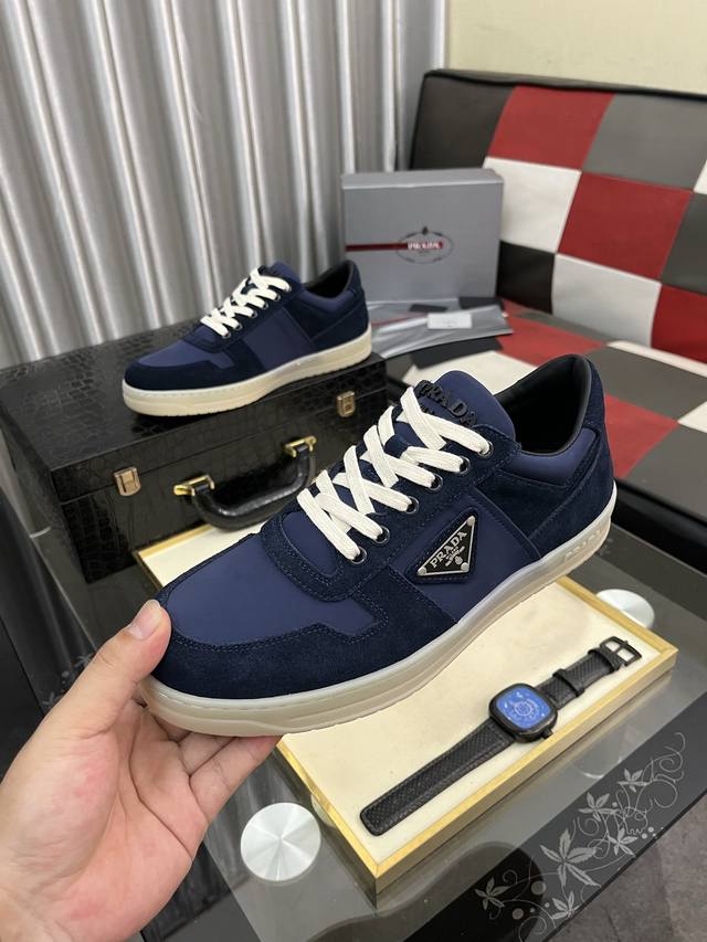 出厂价Pp: Prad*普拉达2025春夏新品男士高端运动鞋,这款运动鞋休闲百搭,选用进口牛皮打造,进口羊皮内里,轻质发泡大底,脚感非常舒适,运用柔和简洁的线条