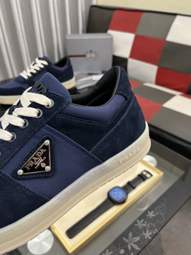 FFF 出厂价Pp: Prad*普拉达2025春夏新品男士高端运动鞋,这款运动鞋休闲百搭,选用进口牛皮打造,进口羊皮内里,轻质发泡大底,脚感非常舒适,运用柔和简洁的线条勾勒出运动风廓形。鞋底轻盈而稳固,带有标志性的涂珐琅三角形金属徽标,鞋舌饰有压花效果丝网印花徽标,彰显别具一格的魅力。 DDD Size:38-445色可选 DDD