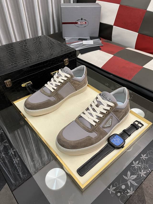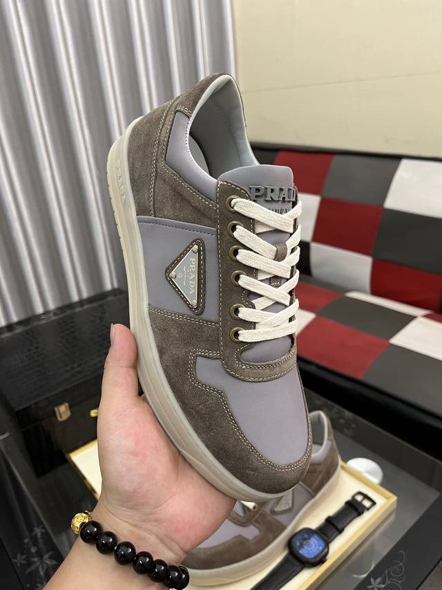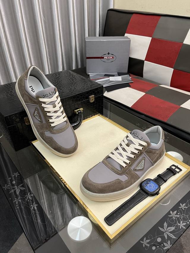 出厂价Pp: Prad*普拉达2025春夏新品男士高端运动鞋,这款运动鞋休闲百搭,选用进口牛皮打造,进口羊皮内里,轻质发泡大底,脚感非常舒适,运用柔和简洁的线条