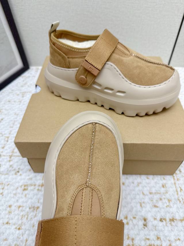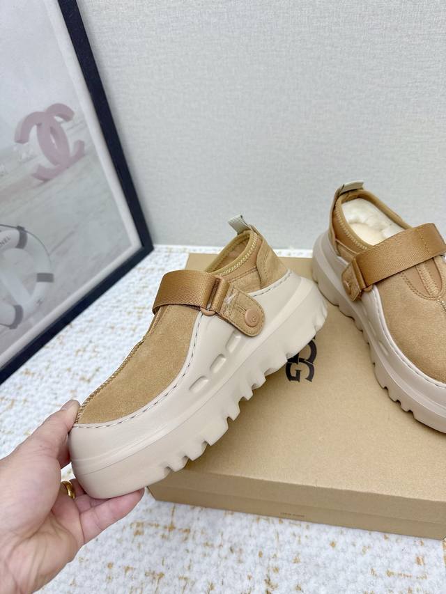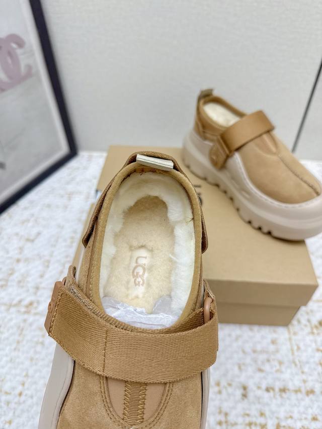 出厂 高版本 情侣款 Ugg新款羊毛鞋 贴脚又舒服,完全不会磨脚,穿一整天都不累。有设计感,无论是搭配牛仔裤走休闲风,还是搭小裙子走温柔风,都能轻松拿捏,适配度100% 回头率超高, 品质细节处理满分,闭眼入,鞋面侧面氯丁橡胶材质十防泼水麂皮雨天照样稳 羊毛超保暖 Eva超轻便大底三公分左右的高度 码数 35-45