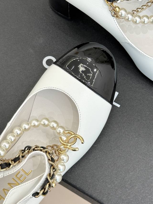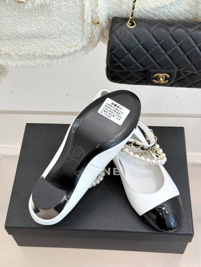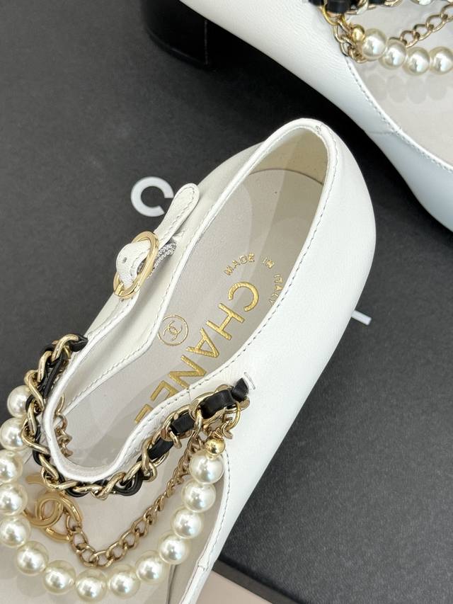厂价p平底 高跟 DDD Chane*|小香25B珍珠链条双C玛丽珍鞋 DDD 这双玛丽珍鞋 无疑是优雅与精致的完美结晶, DDD 每一处细节都散发着独属于香奈儿的高级魅力。 DDD 鞋面上 标志性的双C Logo以立体金属质感呈现 DDD 彰显着品牌的深厚底蕴与奢华品质 。 DDD 双C金属扣旁珍珠链条蜿蜒而下 DDD 颗颗圆润饱满的珍珠紧密排列 DDD 与闪耀的金属链条交织 复古与现代元素融合 DDD 为鞋子增添了一抹灵动的奢华感 DDD 每一步都伴随着链条的轻微晃动 DDD 奏响专属的时尚乐章。 D