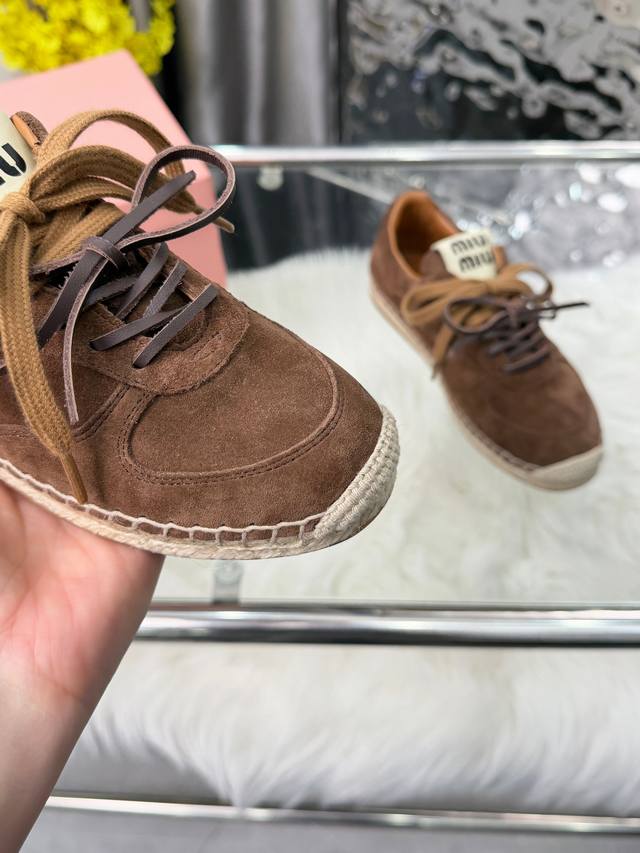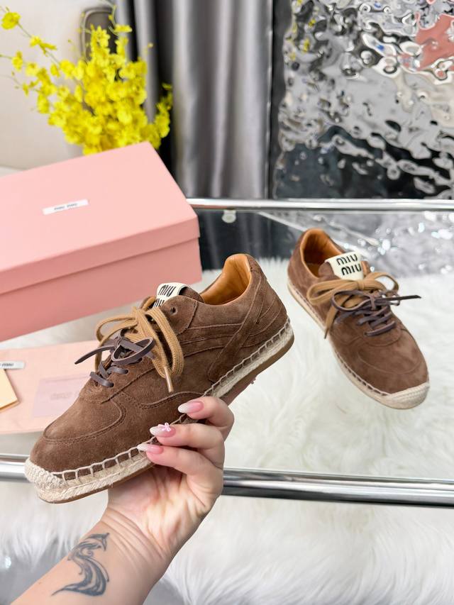 FFF 厂价P 顶级版本 DDD 26S-Miu Miu ▏复古德训鞋 DDD 麻绳底渔夫鞋 走秀款 工艺来自Miu Miu系列的细节特写 新季的潮流此刻挚爱的概念,多元对撞,复古麻绳底,传达现代风格~ 怎么穿都好看,时髦精最爱 的潮流款。 DDD 鞋面;进口牛皮 DDD 内里;羊皮 DDD 大底;麻绳橡胶工艺大底,欢迎报单。 DDD 码数;35-40 41定做 DDD