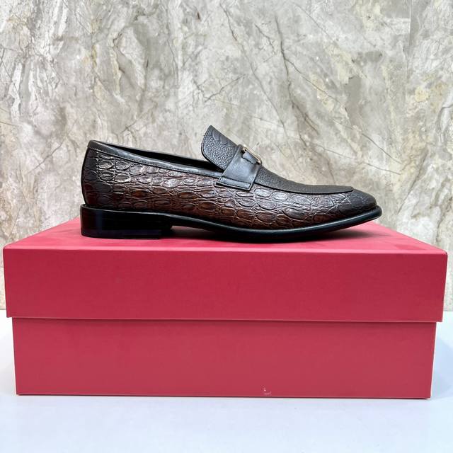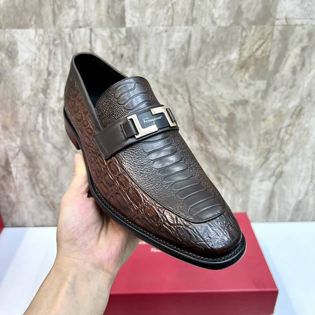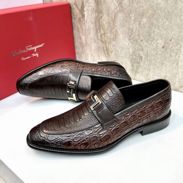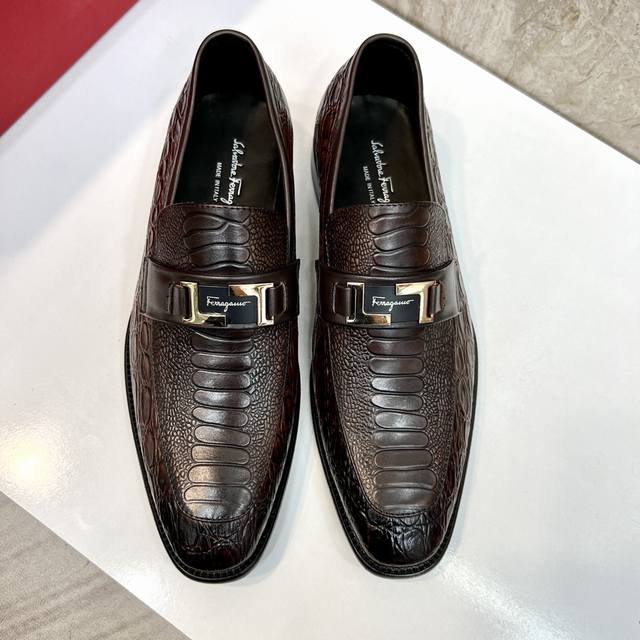 FFF 原版真皮大底 DDD 品牌:Ferragamo 菲拉格慕 DDD 标准码:男码38–44 45定做 DDD 等级:官网同款 顶级原单 DDD 材料:牛皮压纹 牛皮内里 原版真皮大底 DDD 款式类别:男士时尚皮鞋 DDD 颜色:实物图 DDD