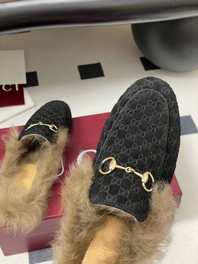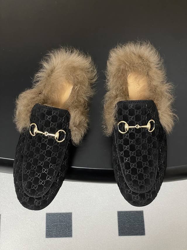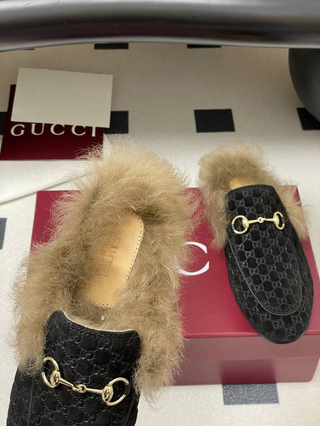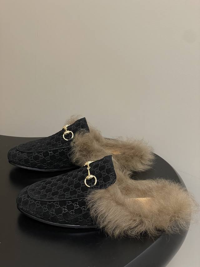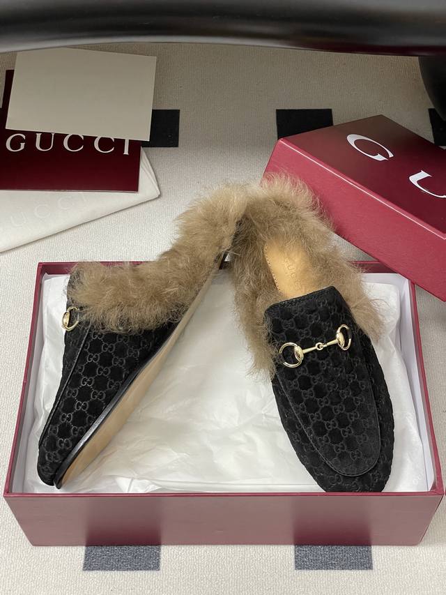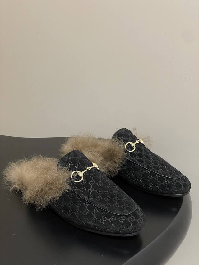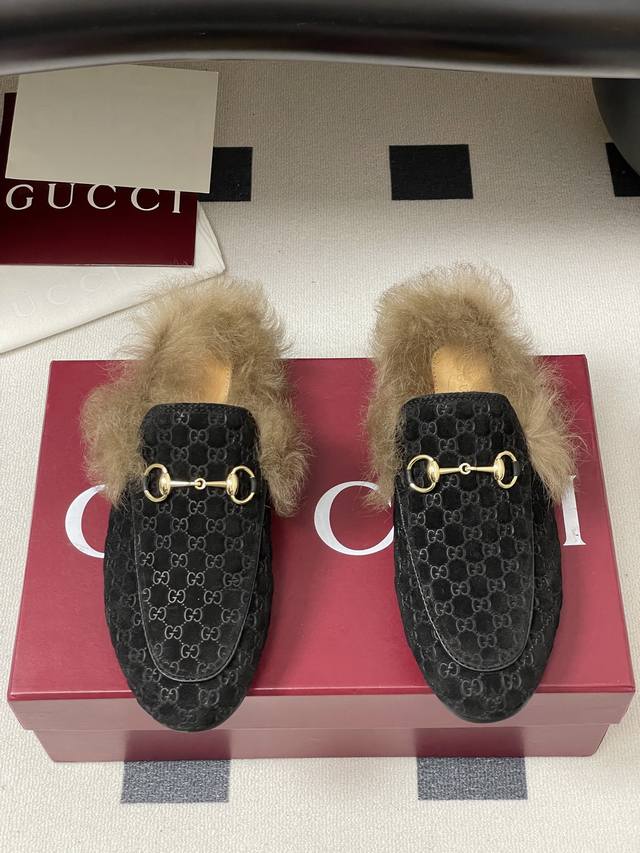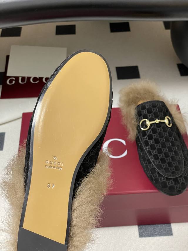/ 古驰princetown经典羊毛拖鞋,双G绒面穆勒鞋马衔扣平底半拖鞋托斯卡纳毛拖鞋. 这款鞋履材质柔软,廊形精致流畅,彰显日常优雅风范! 鞋面原版双G绒面 牛皮