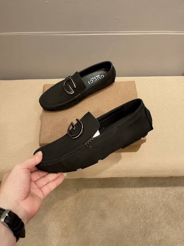 品牌古奇,英文名Gucci,官方旗舰店商务休闲豆豆鞋,巴黎时装周走秀款,惊世骇俗,古奇不一样的感觉,自然不失高雅,[爱情] 鞋面采用头层进口意大利磨皮牛皮,舒适