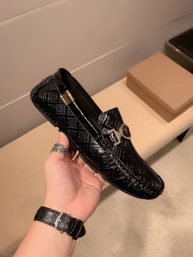 FFF 品牌范思哲,鞋面头层意大利原版牛皮+性感美杜莎头像,男士最爱,舒适透气牛里,原版进口耐磨橡胶底,官网出品,男士心备佳品,穿着舒适。精致大方,无论是专心致志地工作,与家人共度闲暇时光,还是在城市或乡间体验高雅的生活方式,该系列均可彰显真正的男性魅力。 [奋斗]标准码37~47 DDD