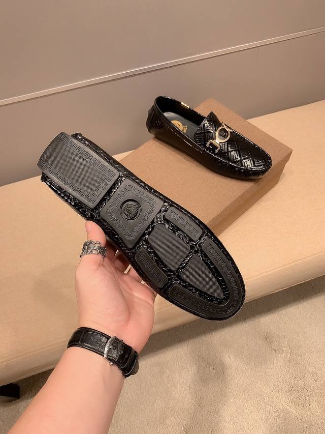 品牌范思哲,鞋面头层意大利原版牛皮+性感美杜莎头像,男士最爱,舒适透气牛里,原版进口耐磨橡胶底,官网出品,男士心备佳品,穿着舒适。精致大方,无论是专心致志地工作