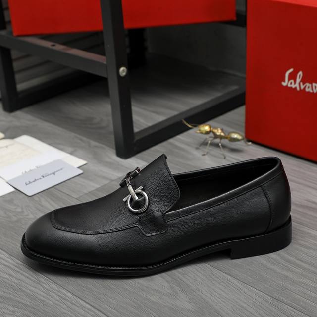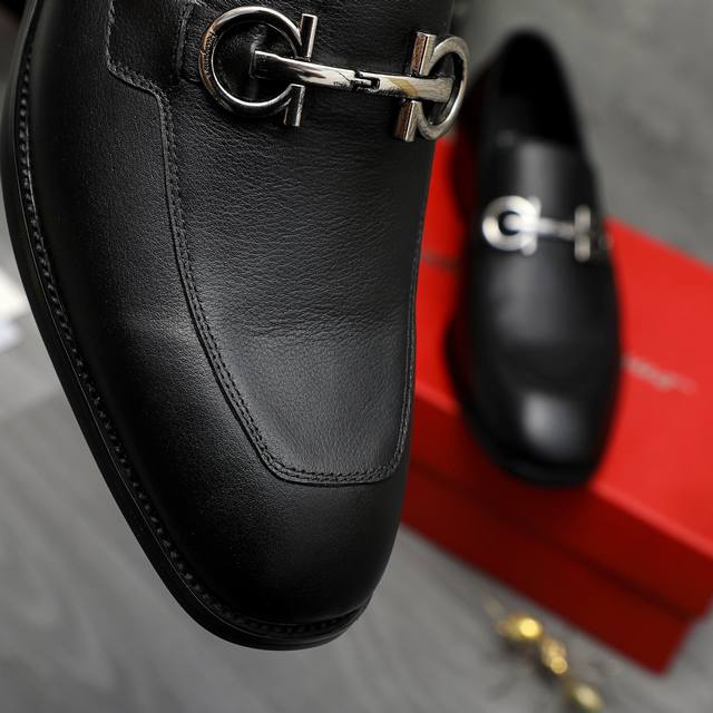 工厂p价p 实价 水染牛里 Salvatore Ferragamo 菲拉格慕 男士最新款休闲商务皮鞋 同步上市 面料采用专用进口原版开边珠小牛皮...