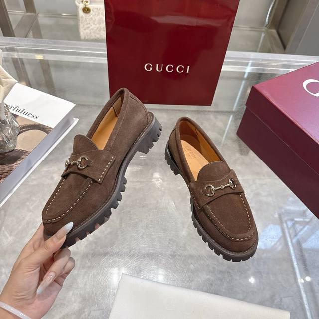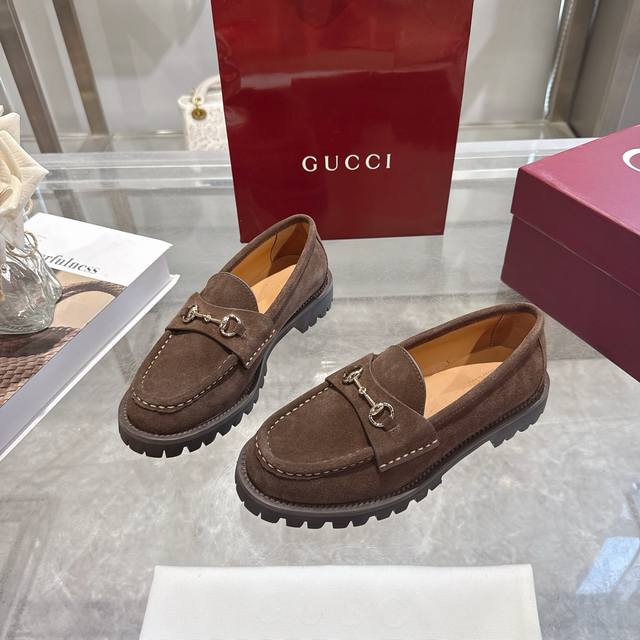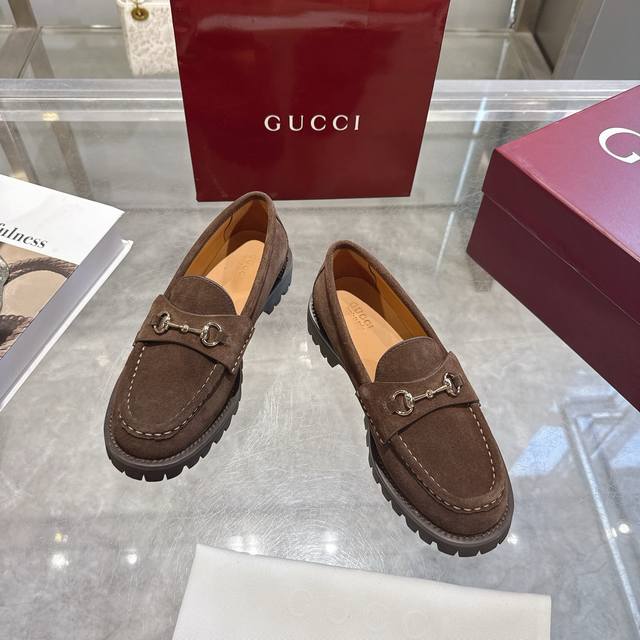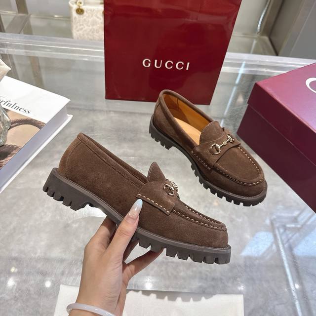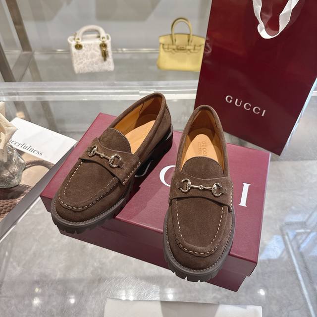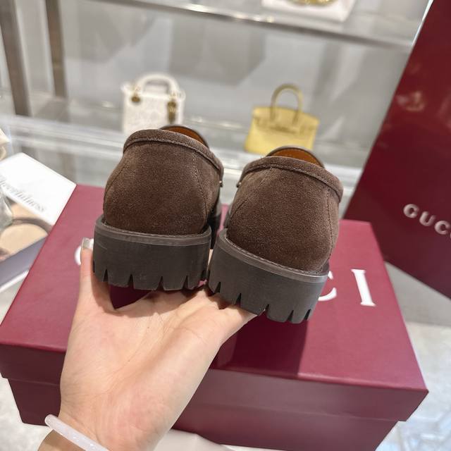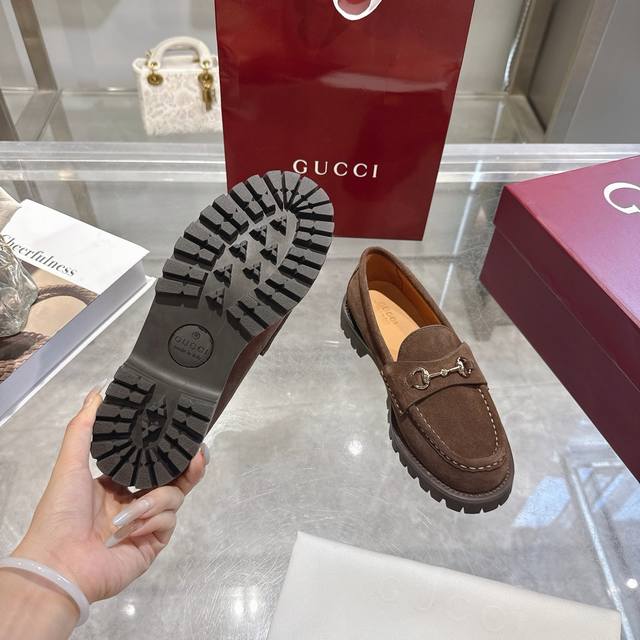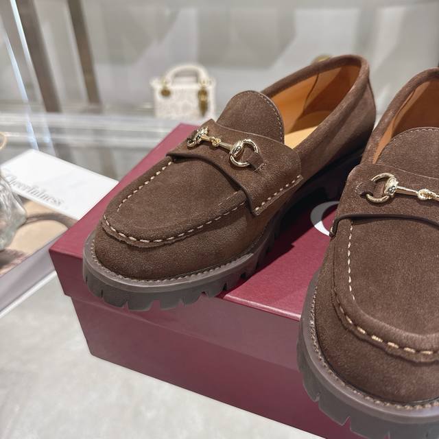 / 女士马衔扣五金乐福鞋超轻材料橡胶大底 精致的细节为这款乐福鞋增添了优雅气质。鞋面采用光滑的绒面革制成,搭配厚实的橡胶鞋底,更显时尚。浅金色马衔扣为这款经典而又不