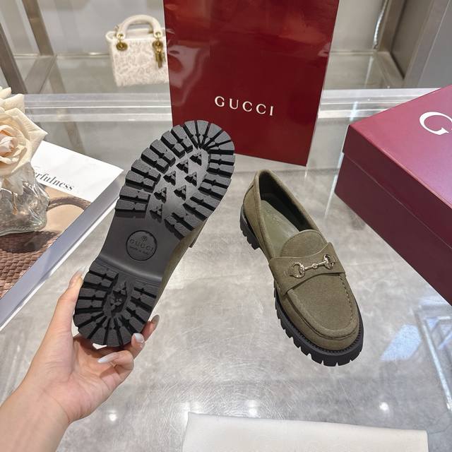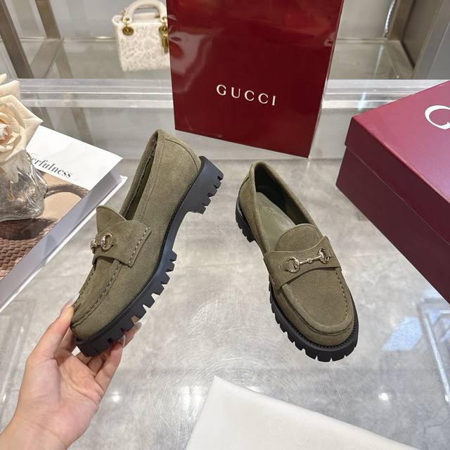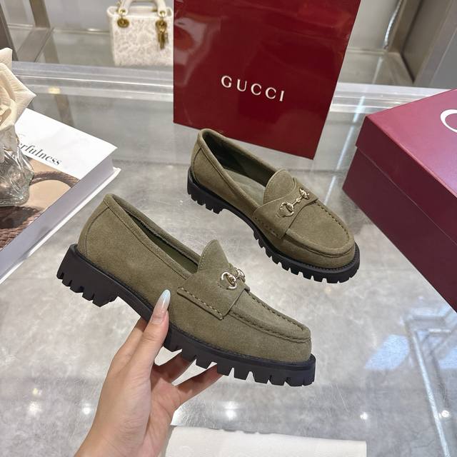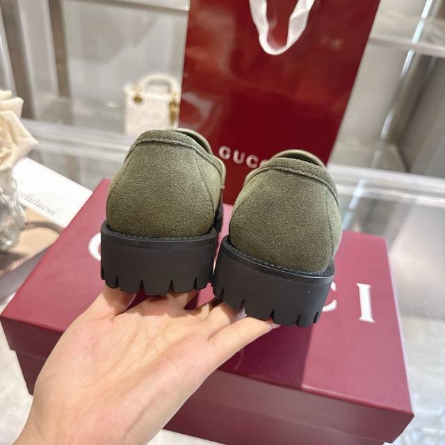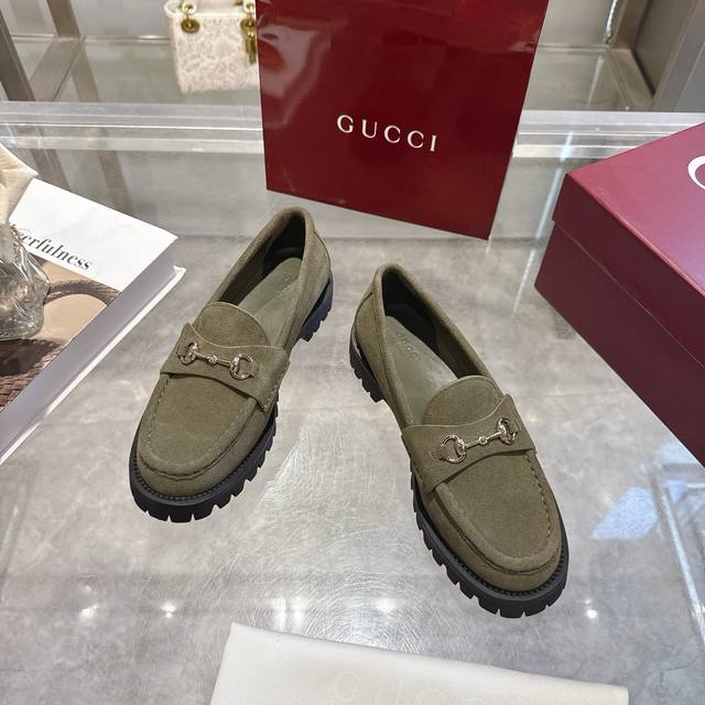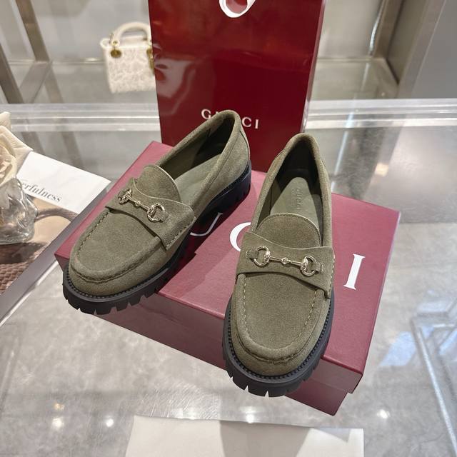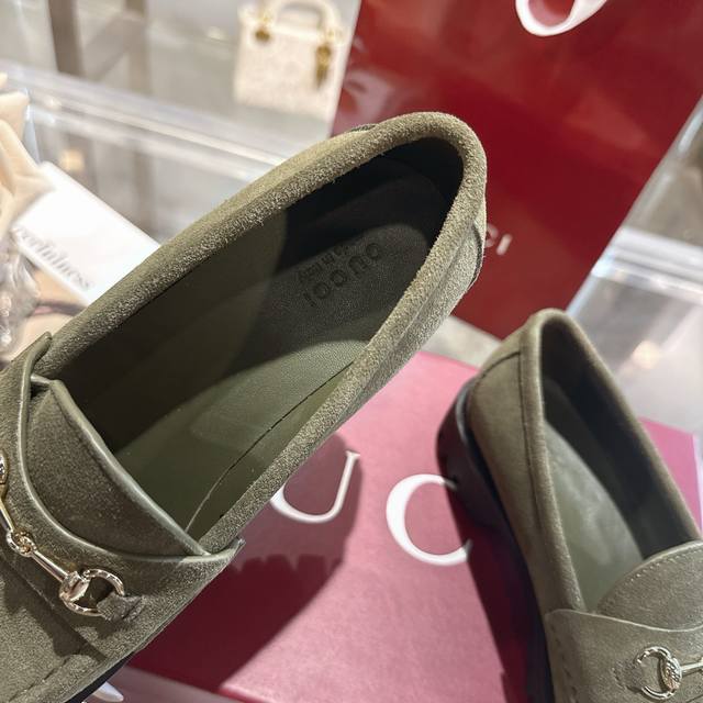 / 女士马衔扣五金乐福鞋超轻材料橡胶大底 精致的细节为这款乐福鞋增添了优雅气质。鞋面采用光滑的绒面革制成,搭配厚实的橡胶鞋底,更显时尚。浅金色马衔扣为这款经典而又不