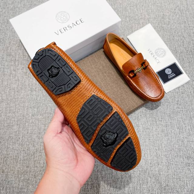 / 实价 Verace 范思哲官网男士四季休闲高端豆豆鞋,最新元素潮爆全球,官网火爆热卖,原版版本,专柜爆款,鞋面意大利进口原版头层牛皮性感美灶莎头像金属扣,原版防