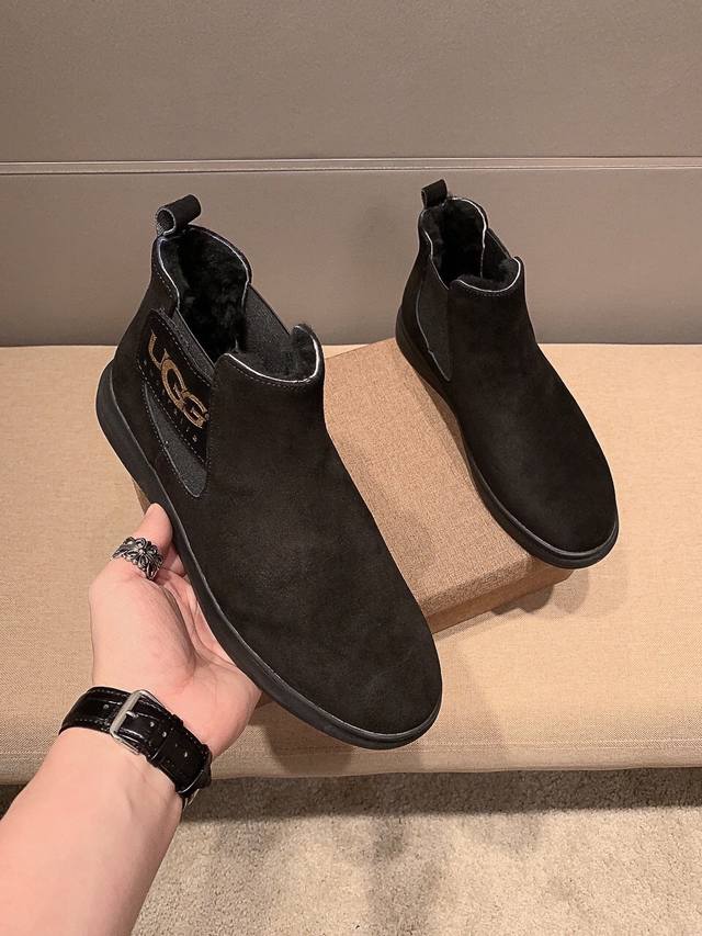 实 ,品牌Ugg,官方最新款,原單1:1最新靴子真綿羊毛,假一賠十,絕對的高端貨,質量純是沒話說,精選上等進口皮料,傾心打造完美紳士珍品,鞋面頭層高絲光牛絨+真綿羊毛內里,嚴謹精細做工 ,奢華高端,男士冬季首選!2色標準碼37-45
