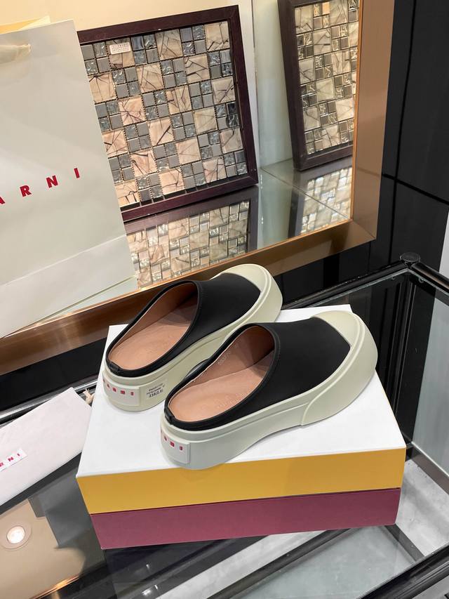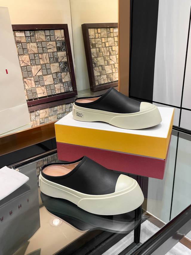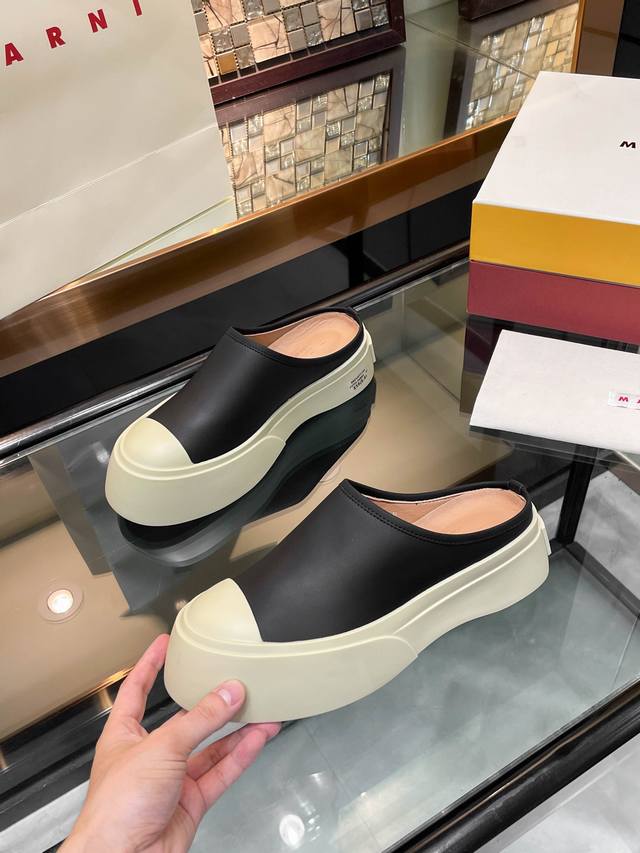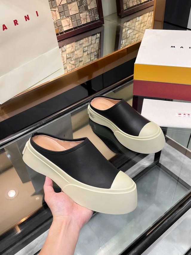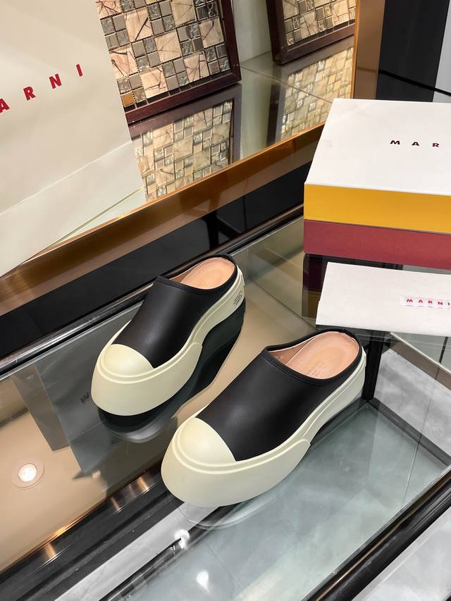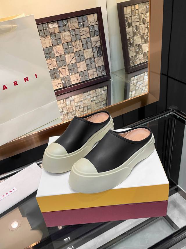 常年现货 代购版跑量价皮面 Marni经典 Mona同款胖头半托厚底鞋 最新彩色双盖包装 主推王炸单品 蠢萌蠢萌的一只 敲可爱又贼时髦的味道 上脚非常好看常规小