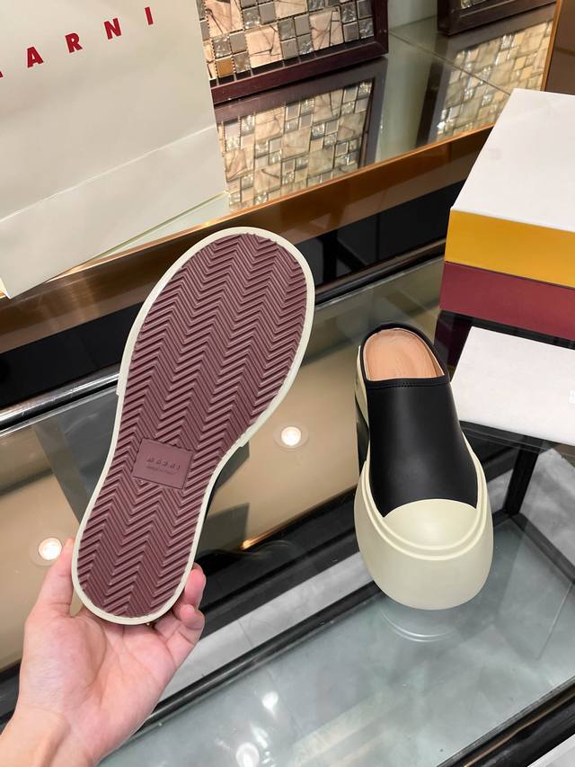 / 常年现货 代购版跑量价皮面 Marni经典 Mona同款胖头半托厚底鞋 最新彩色双盖包装 主推王炸单品 蠢萌蠢萌的一只 敲可爱又贼时髦的味道 上脚非常好看常规小