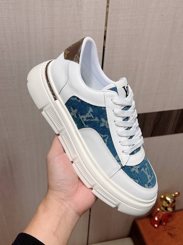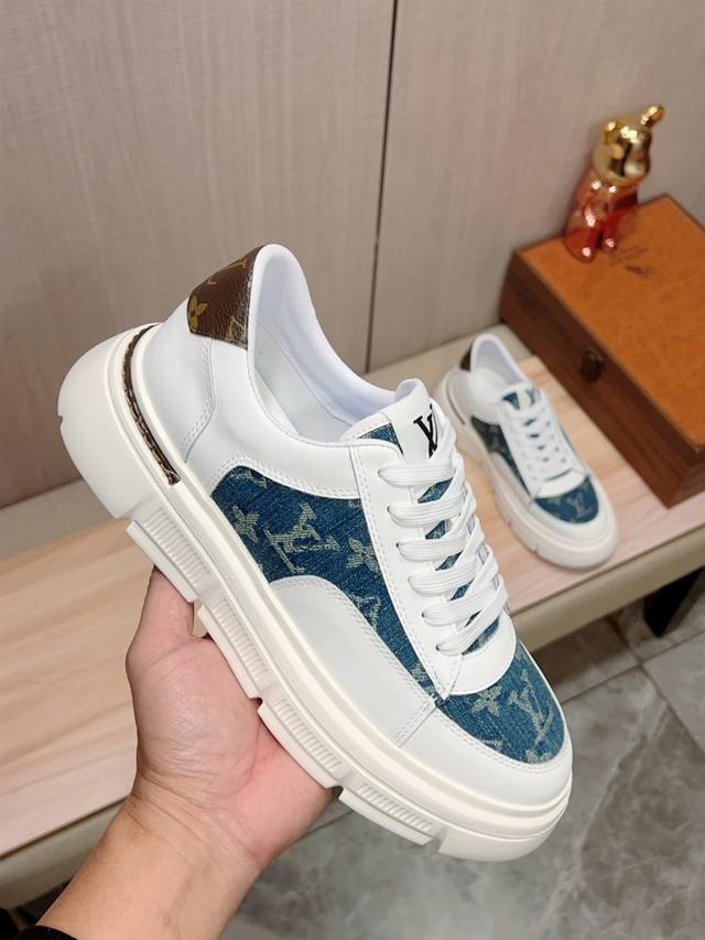 / 新款: 厂价 Lv* 最新爆款休闲鞋,顶端品牌 奢侈~代购,顶级~质量。 鞋面選用进口透气牛皮搭配布材质透气羊皮垫脚 精细做工。原版个性时尚柔软橡膠耐磨防滑大底