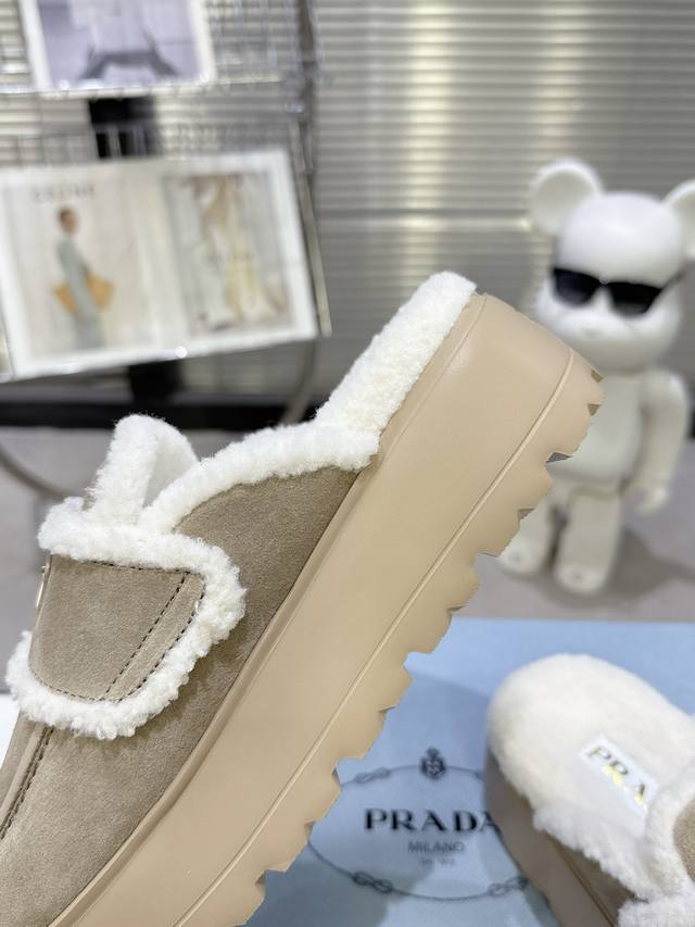 P家最新款 面:高丝光牛反绒 里:原版定制全真羊毛 垫:全真羊毛 底:防滑耐磨花纹橡胶大底 标志性三角标,原版包装 Size...