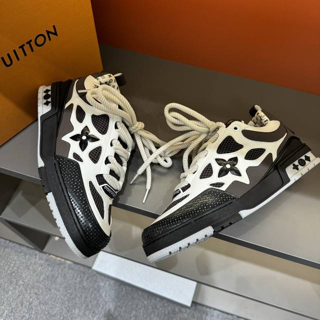 码数38-46 L*Skate 运动鞋,本款 L.V Skate 运动鞋拼接 Monogram 丹宁布和科技网格面料,搭配科技鞋带和橡胶外底,彰显 1990 年