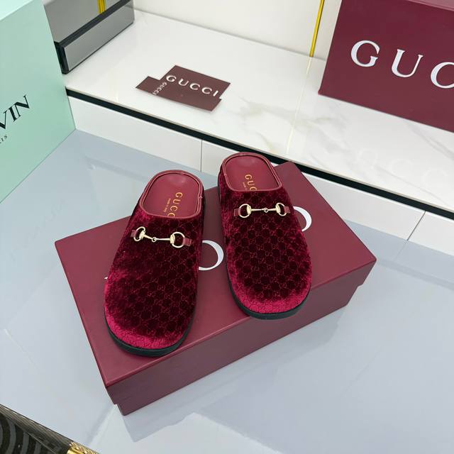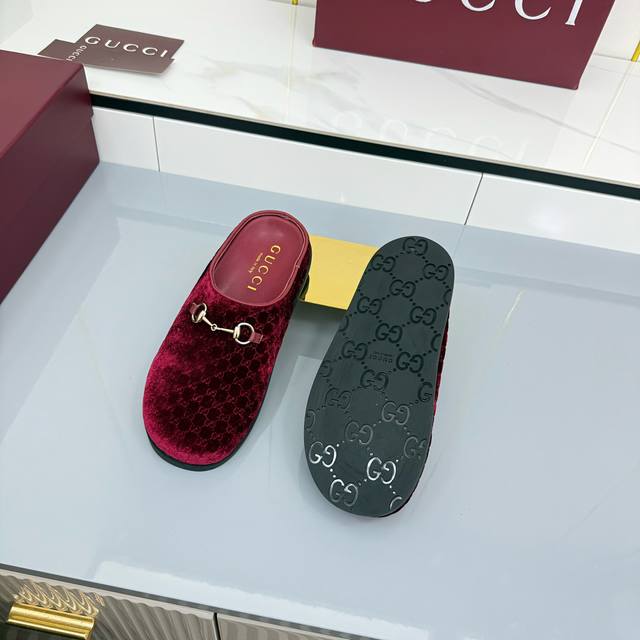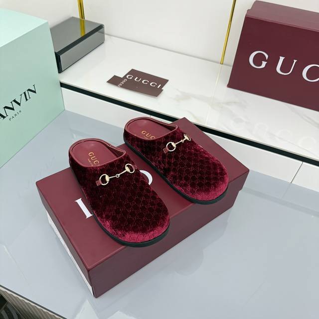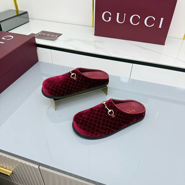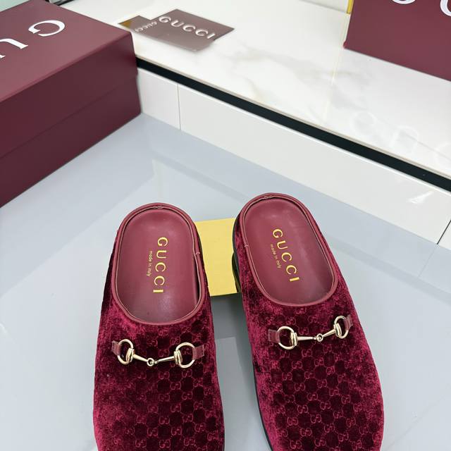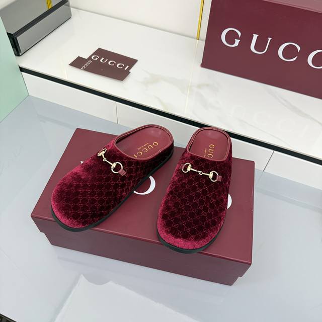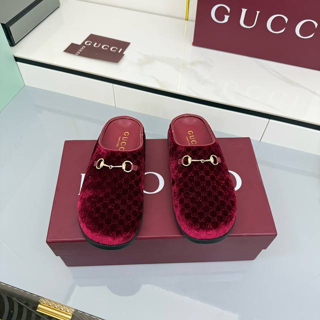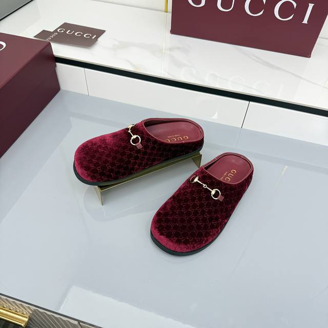 / 秋冬新款反绒牛皮马衔扣女士羊毛拖鞋 Gg在 2025 秋冬系列中继续使用档案符号。Horsebit 硬件让人想起品牌的马术传统,出现在这双 Camel 和牛皮高