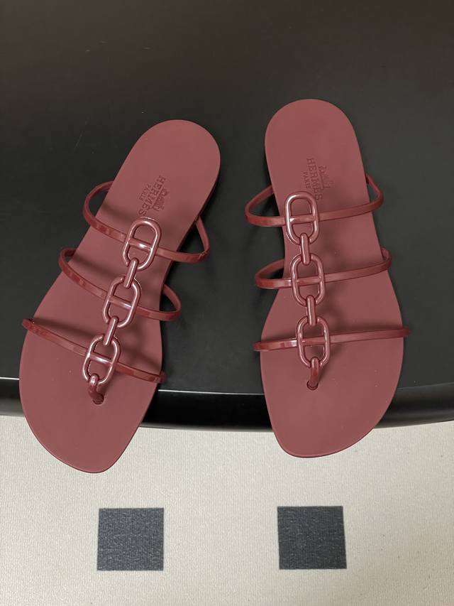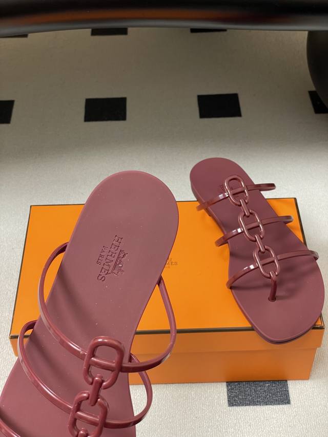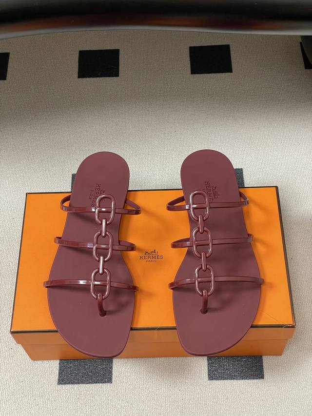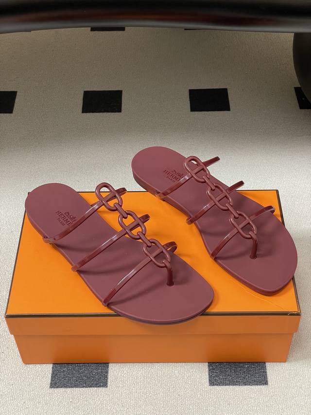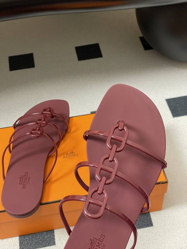 FFF 莞产 DDD Hermes 爱马仕 2026春夏新款H家 Mykonos系列经典 猪鼻子果冻鞋平底凉拖鞋 DDD 防水Tpu凉鞋,饰有标志性 Chaine D'ancre 细节。打造休闲造型,可谓夏日良伴。 DDD 材质:进口Tpu 环保无异味 DDD 码数:35-39 40.41.42定做不退换 DDD