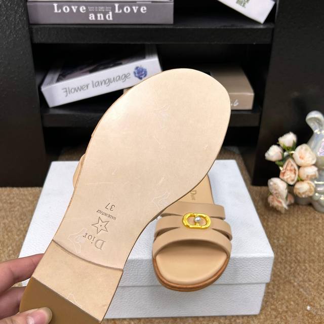 高版本皮底 ,橡胶底310 DDD 女鞋 Cd字母金属Logo平底镂空凉鞋,圆头粗跟果冻色拖鞋 市面顶级版本 DDD 材质:进口小牛皮+水染羊皮内里+意大利真皮