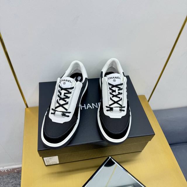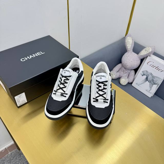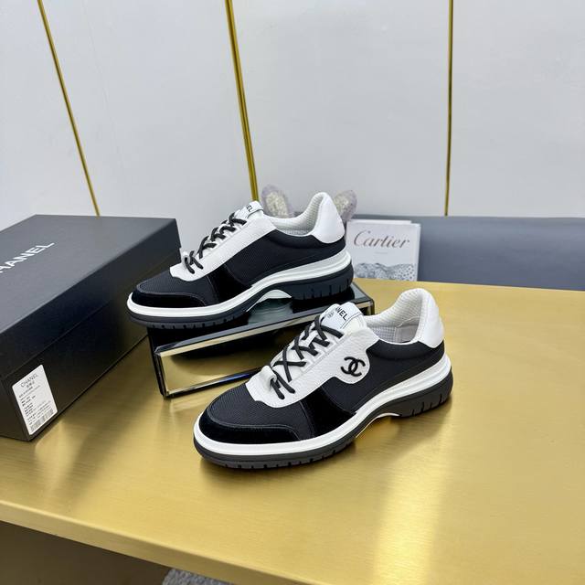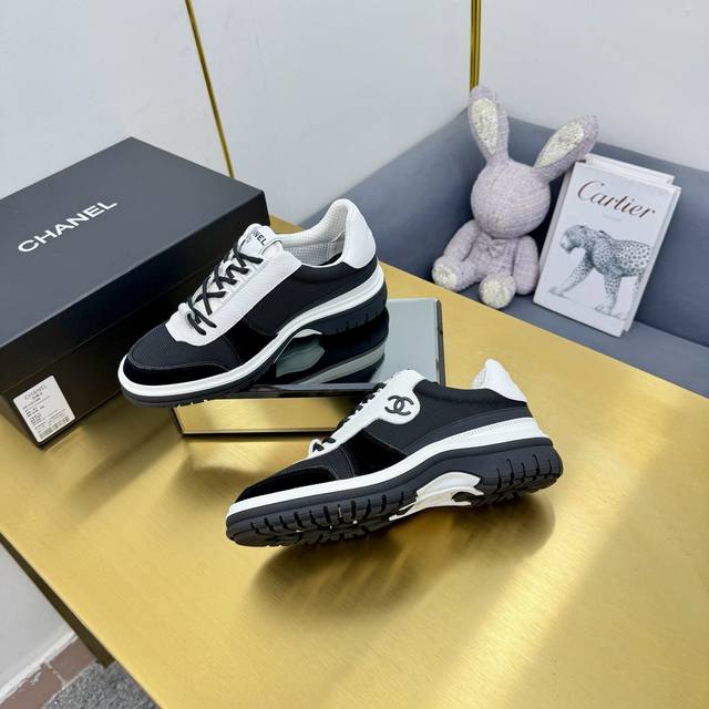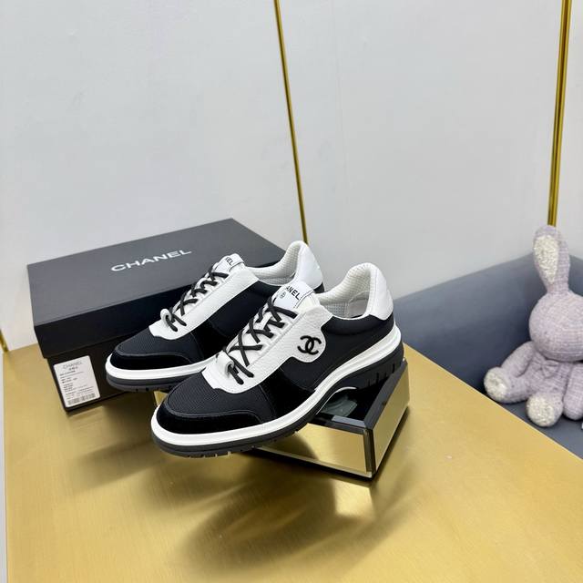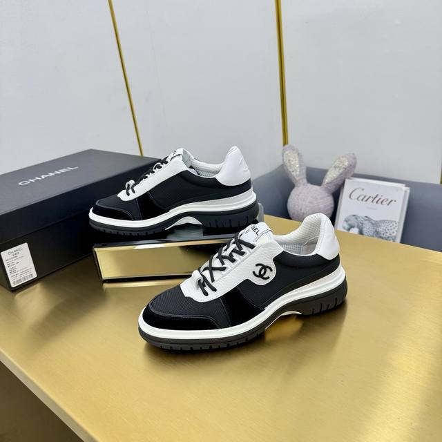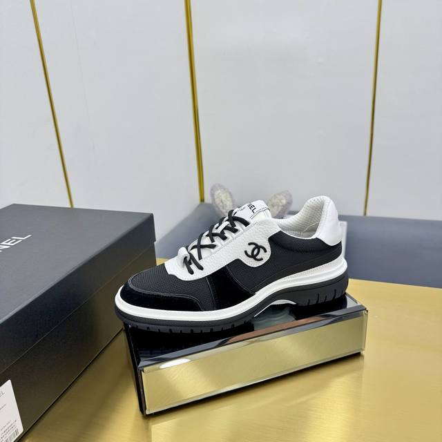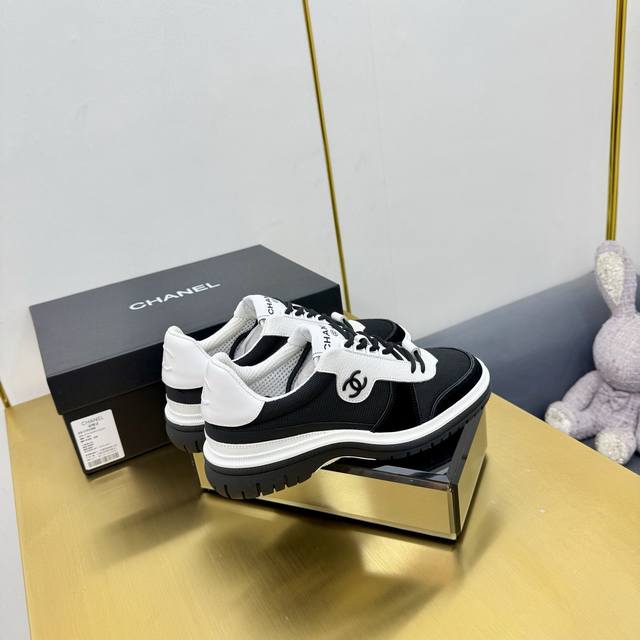 Chanel 香奈儿小香C家 2025B 厚底黑白拼色熊猫鞋 板鞋 -专柜爆火超难抢的一款松糕底小白鞋 球鞋 休闲鞋 原版购入开发 开模大底...