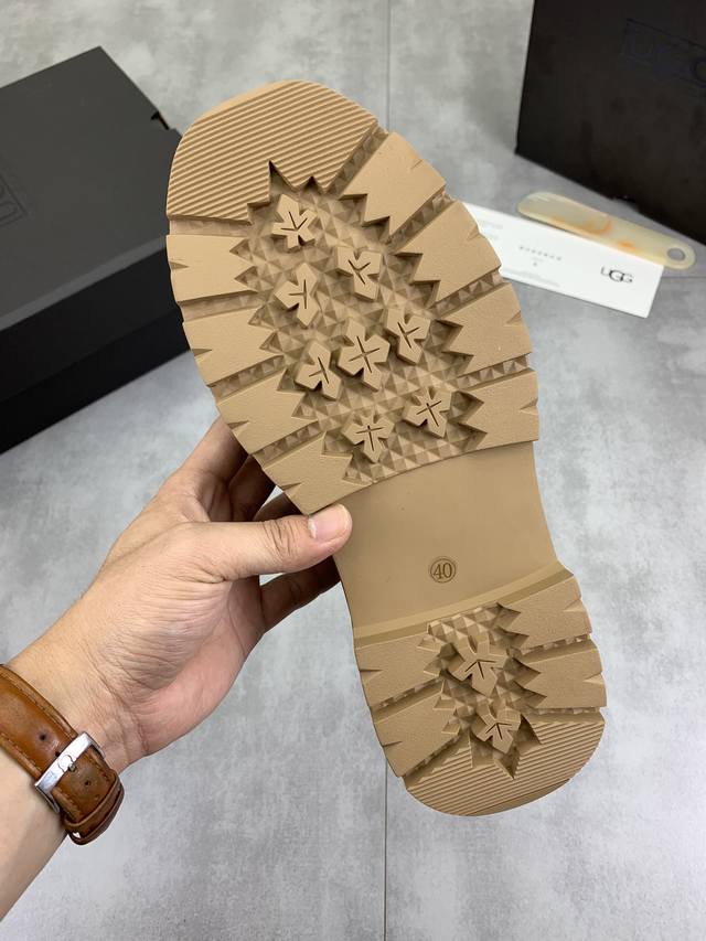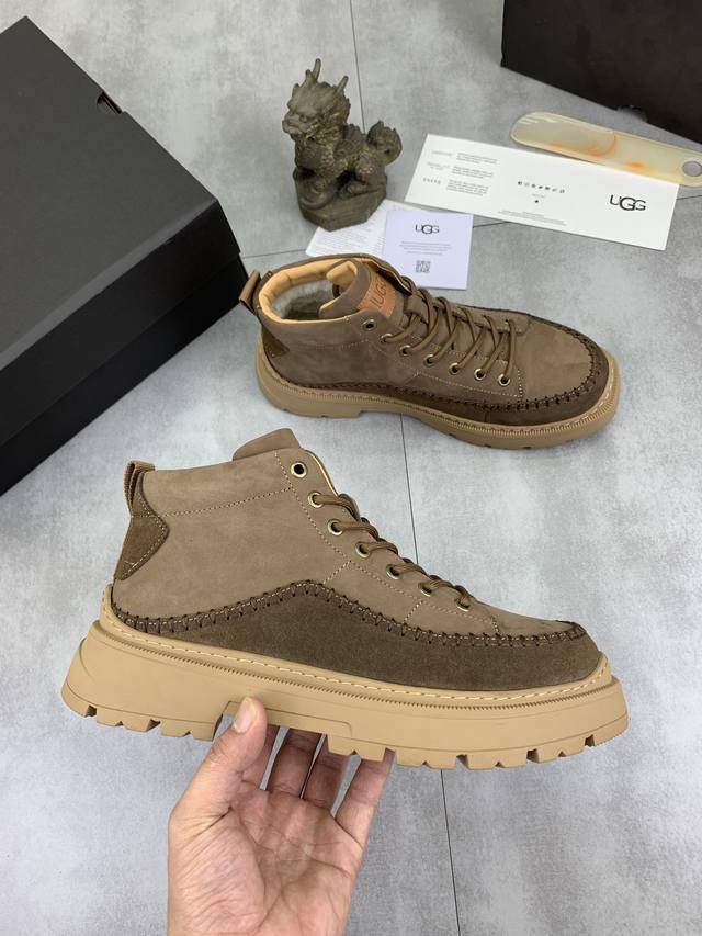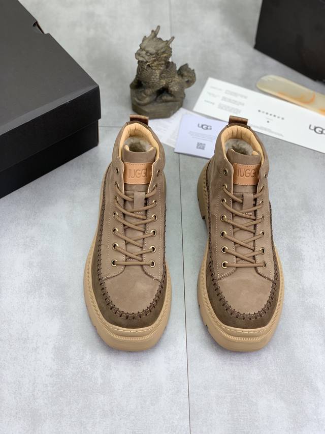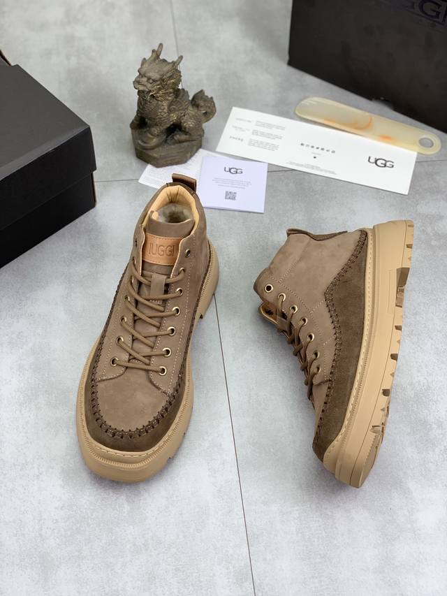 / 工厂价 UGG 最新款开口笑 全真羊毛内里 顶级高端品质皮毛一体保暖雪地靴来自澳洲温暖奢侈品牌男鞋,UGG-5877官网同步、采用进口牛皮制作,精心缝制而成..