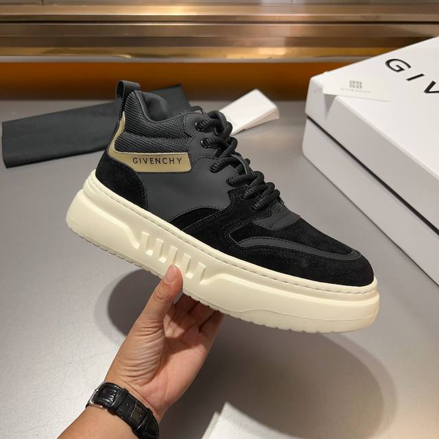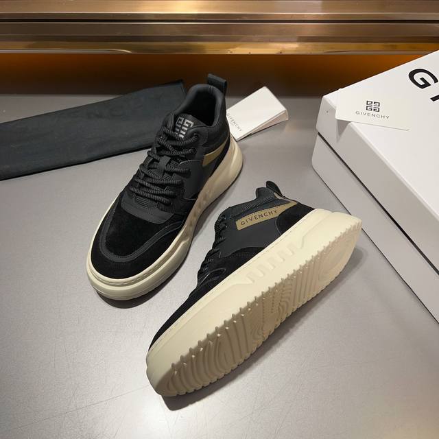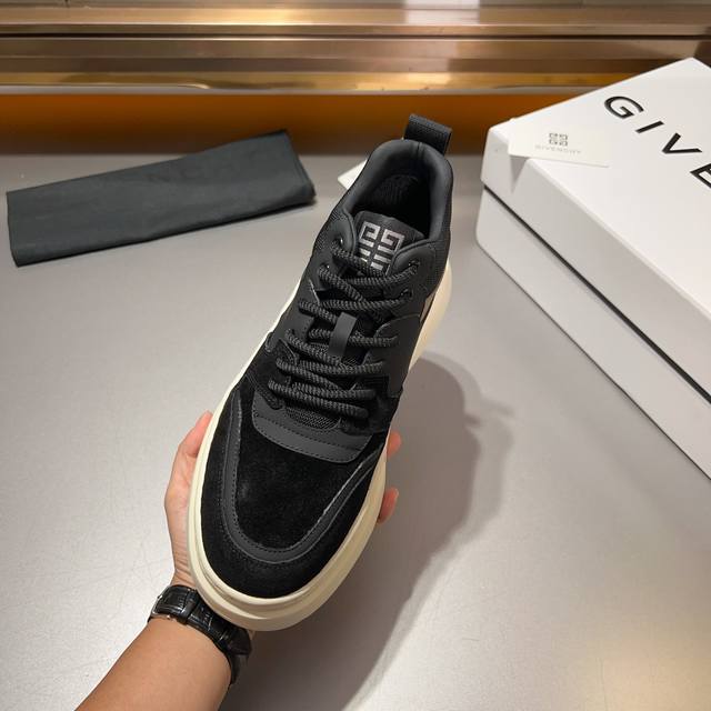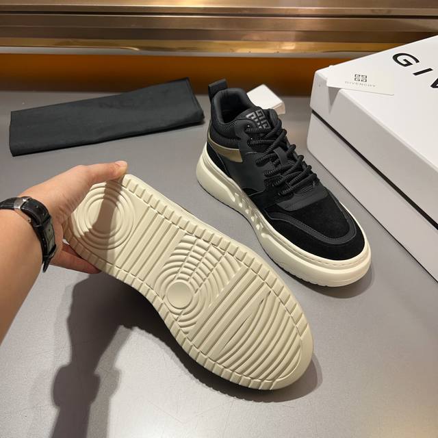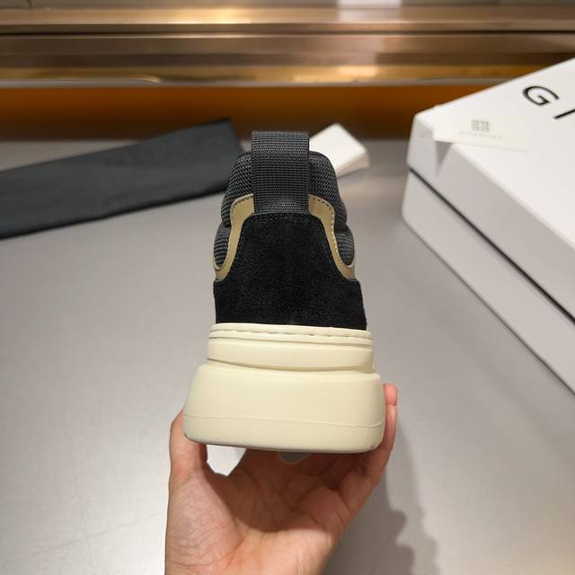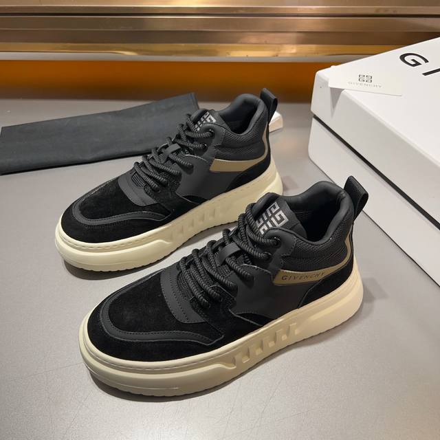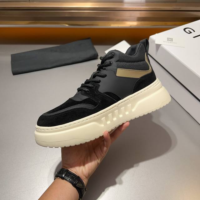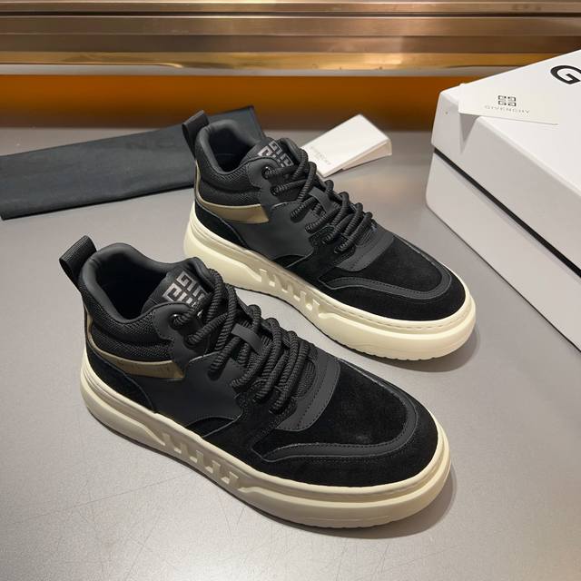 Gv *y~全新GIV 1男士厚底增高休闲运动鞋,鞋面高品质小牛皮拼接透气布面制成!上脚效果帅气有型,增高4CM,提升气场,鞋身撞色拼接设计,饰有4G LOGO标志和立体GIVENCHY标志。轻质TPU发泡大底,脚感轻便舒适!