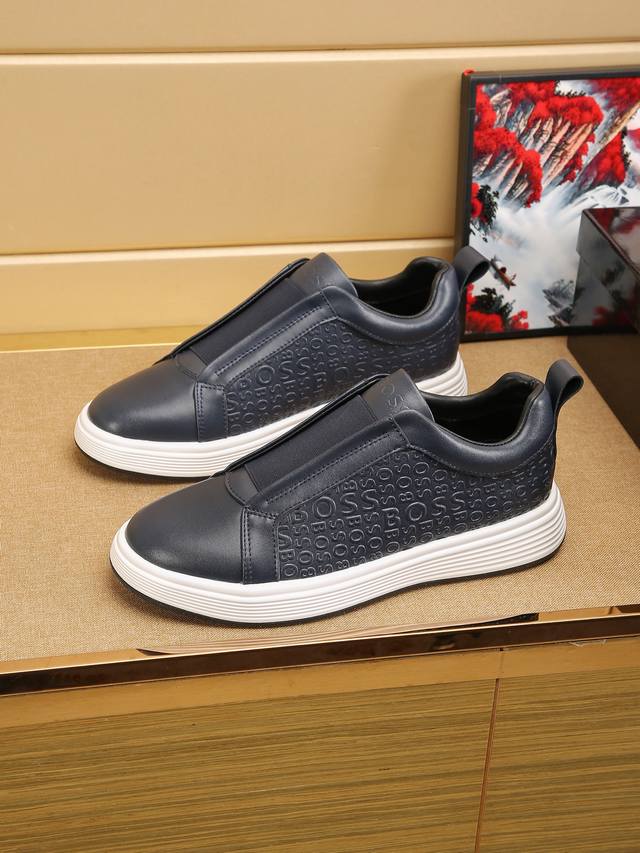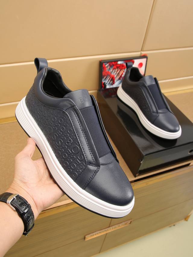 2025年新款刚上,Boss休闲运动男鞋,鞋面采用最新压花材料,大方得体,此款鞋底,非常柔软,舒适轻便,码数38-46码,价格 DDD