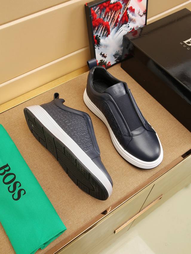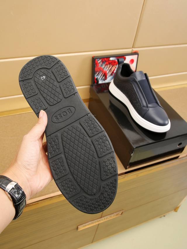 2025年新款刚上,Boss休闲运动男鞋,鞋面采用最新压花材料,大方得体,此款鞋底,非常柔软,舒适轻便,码数38-46码,价格