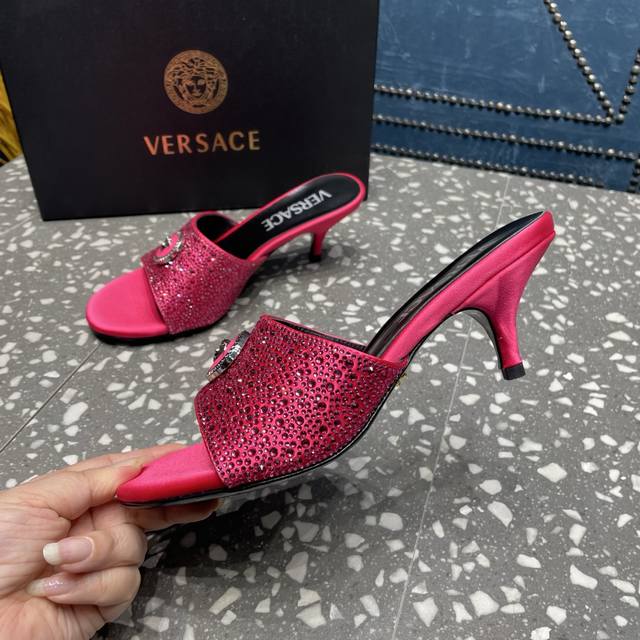 versace范思哲 专柜新款 鞋面:真丝烫钻 内里垫脚:羊皮 跟高:6Cm 鞋底:真皮大底 码数:35-42码 42定制不退换 ⑥价格p:钻