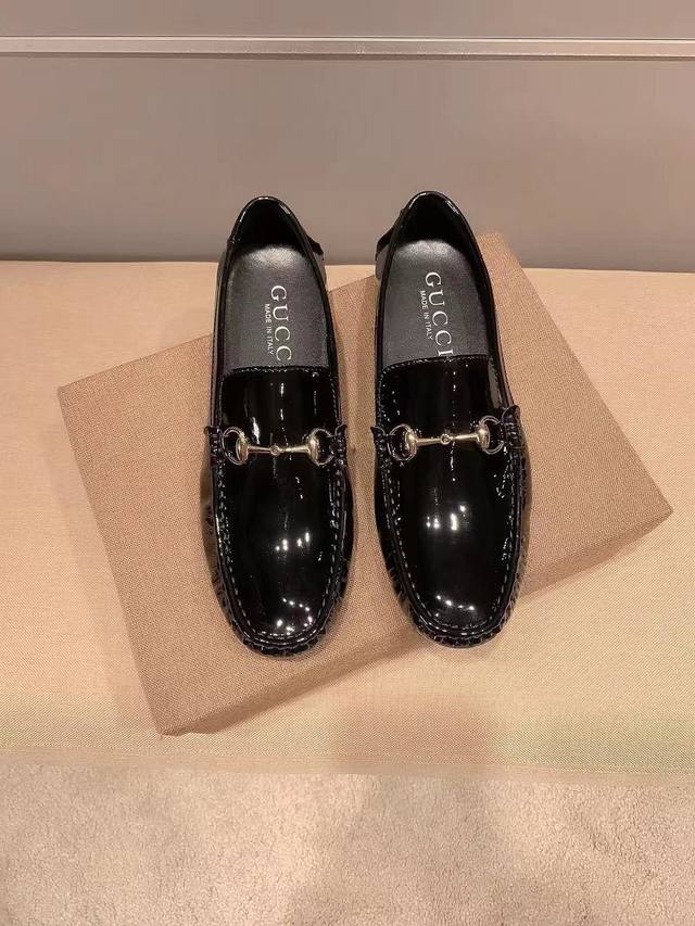 古奇原单新款,鞋面进口意大利头层牛漆皮,头层猪皮内里,原版进口耐磨橡胶底, 官网出品 精致优雅心备佳品,采用精湛工艺。穿着舒适。精致简单鞋面尽显品牌低调优雅,适合四季衣橱,无论是专心致志地工作,与家人共度闲暇时光,还是在城市或乡间体验高雅的生活方式,该系列均可彰显真正的男性魅力。 [奋斗]标准37~45