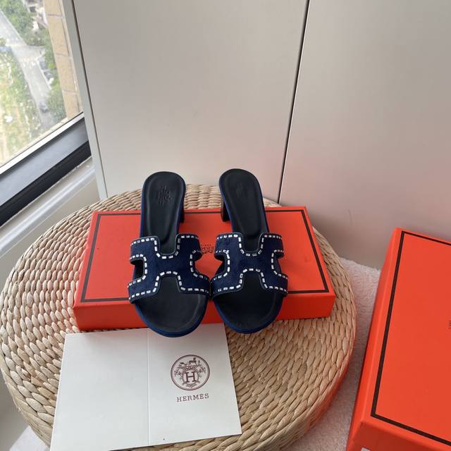 hermes 爱马仕 夏季经典粗跟H拖鞋 旅游度假沙滩凉拖