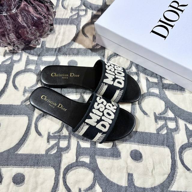 迪奥 Miss Dior系列平底拖鞋 字母刺绣拖 拼色一字拖 码数 35-42
