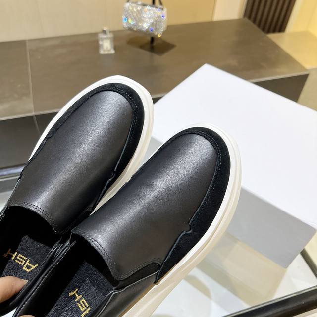 / 上新Ash 款号031 秋季明星同款 休闲系列,简约设计的松紧透气鞋身,搭配轻盈回弹增高鞋底。 面料:头层牛皮+牛反绒 鞋底:橡胶发泡大底 内里:羊皮 颜色:黑