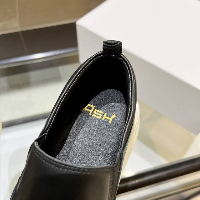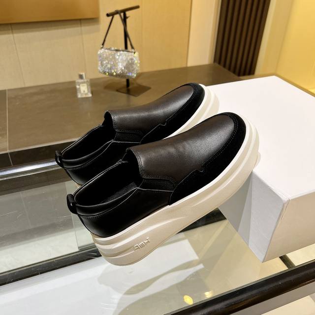 上新Ash 款号031 秋季明星同款 休闲系列,简约设计的松紧透气鞋身,搭配轻盈回弹增高鞋底。