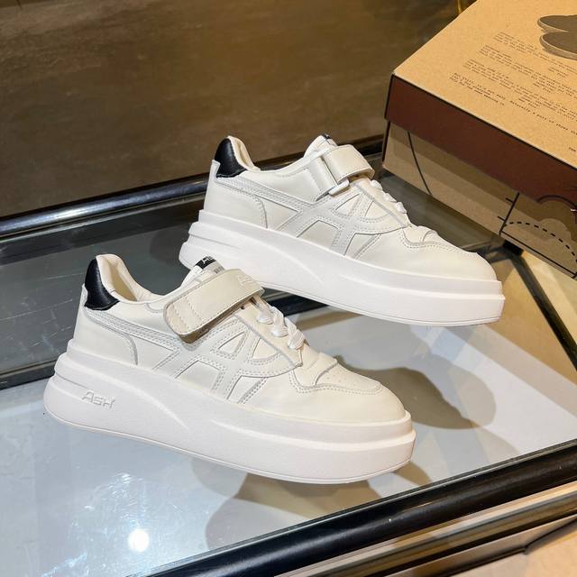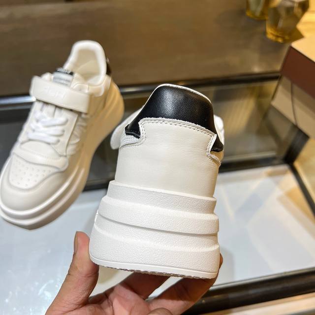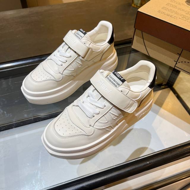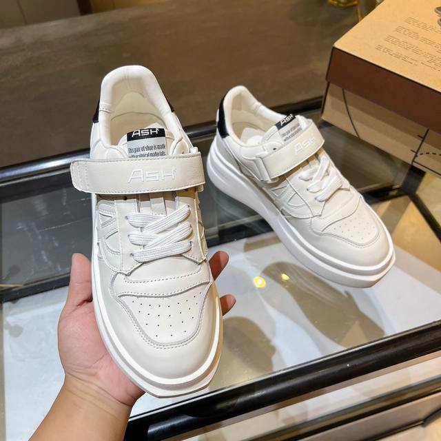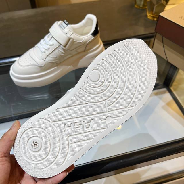 / 上新Ash 秋季明星同款 休闲系列,简约设计的冲孔透气鞋身,搭配轻盈回弹增高鞋底。 鞋底:橡胶发泡大底 内里:羊皮 颜色:黑色,粉色,杏色,兰色 Size:35