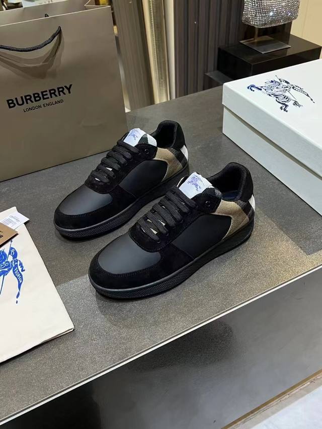 / 专柜最新款,意大利制造的棉质混纺运动鞋,饰有博柏利格纹。网眼布衬里款式采用格子鞋带和橡胶鞋底,刻有博柏利档案字样。博柏利经典的一部分,独特的博柏利风格的衣柜基础
